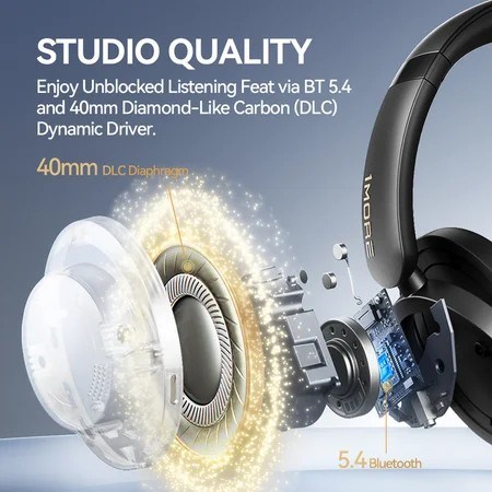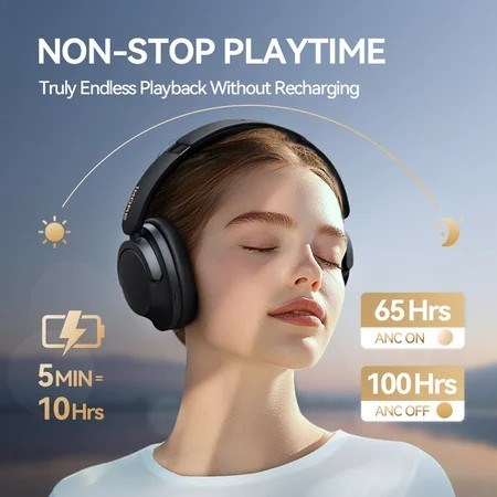 Experience unparalleled sound with dual Hi-Res gold certification and LDAC technology that delivers three times the data of standard Bluetooth, offering rich, detailed audio that brings your music to life. These over-ear Bluetooth headphones feature 40mm diamond-like drivers that produce clear, balanced sound with a frequency response up to 40kHz, ensuring you hear every detail, from the deepest bass to the highest treble. Designed with ultra-lightweight materials and soft protein leather ear cushions, these over-ear headphones offer an adjustable fit that stays comfortable, even during long listening sessions, making them ideal for work, travel, or relaxation. Block out distractions with dual-feed noise cancellation technology, which reduces external noise by more than 42dB, making these headphones perfect for noisy environments like subways, airports, or busy streets. Keep the music going with up to 100 hours of playtime in standard mode and 65 hours with ANC on, and a quick 5-minute charge gives you an extra 10 hours of playtime, ensuring your over-ear Bluetooth headphones are always ready when you are. Enjoy studio-quality sound wherever you go, as these bluetooth headphones are precision-tuned by Grammy-winning engineer Luca Bignardi to deliver a natural, balanced listening experience, ensuring your music sounds just as the artist intended. Whether in a busy office or on the go, these over-ear headphones ensure your voice is heard clearly, thanks to the advanced microphone and AI noise reduction algorithm that make every call crisp and clear, no matter the environment.