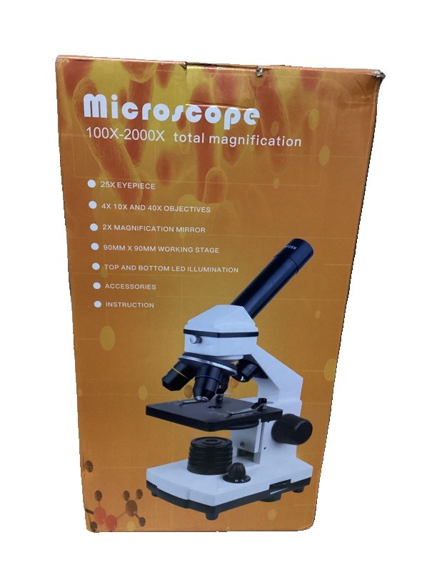 High Magnification WF25X eyepiece alone or with 2X lens, cooperate 4x 10x 40x objective lenses, biological microscopes offers 6 magnification settings, 100X, 250X, 1000X, 200X, 500X, 2000X. Coarse and Fine Focus Monocular Microscopes with solid metal frame and coarse/fine focusing knobs, ensures detail and precise focus adjustment, crate a image more clearer and sharper. Dual Illumination System Top and bottom LED simultaneously brightfield, a 0.65 NA single-lens condenser with disc diaphragm, provide high-resolution color-corrected images. Complete Accessories It comes with phone adapter, wire shutter, 10 operating accessories, 15pcs microscope slides set, carrying bag. Meet all your biological observation need. Practical Educational Tool This 100X-2000X biological microscope is designed to help students/kids/adults/beginner/amateur scientist/hobbyists exploring the fantastic world of the life. It is suitable for school,laboratory or home teaching, one-on-one instruction.
