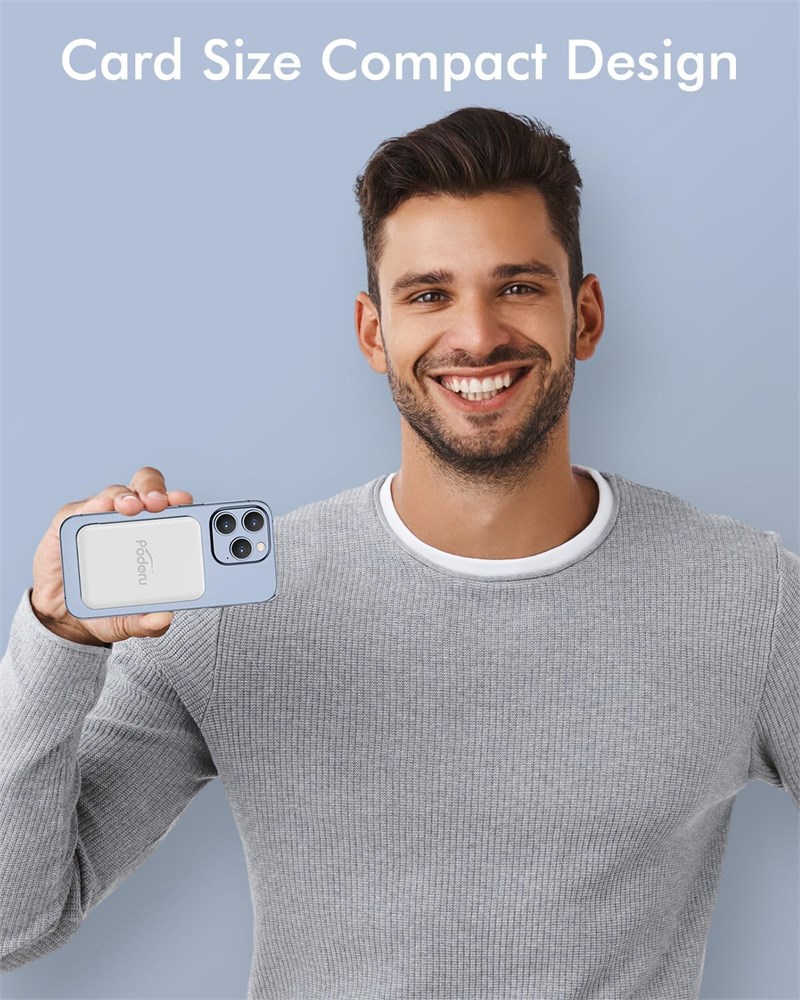 Great Compatibility: This magnetic power bank with the remarkable 5000mAh battery designed for iPhone air, iPhone 17, iPhone 17 Pro, iPhone 17 Pro Max, iPhone 16, iPhone 16 Plus,iPhone 16 Pro, iPhone 16 Pro Max,iPhone 15, iPhone 15 Plus, iPhone 15 Pro, iPhone 15 Pro Max, iPhone 14, iPhone 14 Plus, iPhone 14 Pro, iPhone 14 Pro Max, iPhone 13, iPhone 13 mini, iPhone 13 Pro, iPhone 13 Pro Max, iPhone 12, iPhone 12 mini, iPhone 12 Pro, and iPhone 12 Pro Max Strong Magnetic Wireless Charger: Mag-Safe battery pack with the newest magnetic technology (stronger magnetic and nano adsorption), can directly hold the back of your iPhone 17/16/15/14/13/12 Series,providing up to 15W wireless charging. With the mag-safe power bank you can charge your phone anytime and anywhere, without the hassle of wires, perfect for travel, vacation and camping Charging with Magnetic Phone Case: We recommend charging with MagSafe phone case or without cases to get enough suction (Using a non-magnetic phone case will cause the phone to not adsorb properly) Extremely Compact Design: This magnetic portable charger iphone fits easily into your pocket, even while wearing skinny jeans. Due to its compact size of 3.74*2.55*0.55 inches, it will not block the camera. The lighter weight(only 120g) allows you to use it with iPhone gently Fast Wireless & Wired Charging: Support 5W, 7.5W, 10W and 15W Max wireless charging and max 20W USB-C output; support max 12W Lighting input and max 18w USB-C input; The wireless charger can charge 2 Devices at the same time, shared charging with no waiting. And the portable charger iPhone uses soft silicone material to protect your phone from damage while wireless charging; The magnetic portable charger for iphone ensures faster charging speeds Superior Safety: With 8 built-in low-temperature ice cores, this latest Podoru magnetic power bank has comprehensive multi protect safety system specifically includes temperature control, overcharge protection, short circuit protection;Multi-Protect safety system ensures that your devices are shielded from potential hazards, providing you with a worry-free charging experience Wireless Charging Instructions: Due to the heat generated during the energy transfer process, it is normal for the power bank to be slightly warm (Note: iPhone magnetic cases over 2MM may accumulate heat, if your iPhone overheats during the charging process, please remove the magnetic case for charging or pause the charging process until it cools down and then continue to charge your iPhone)