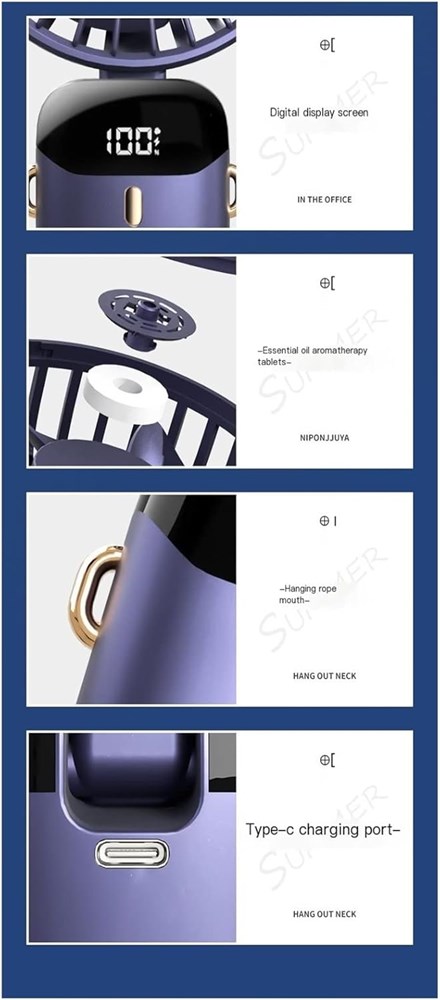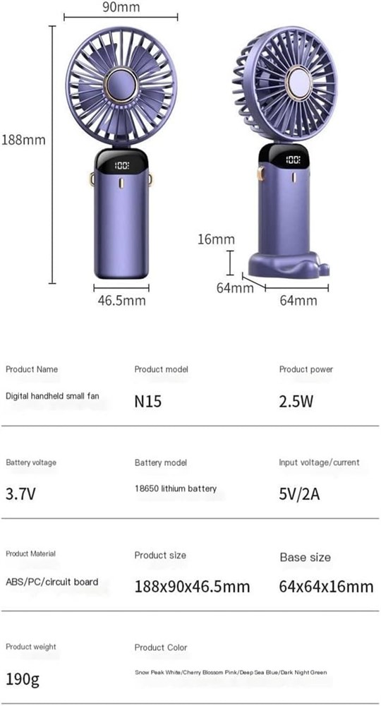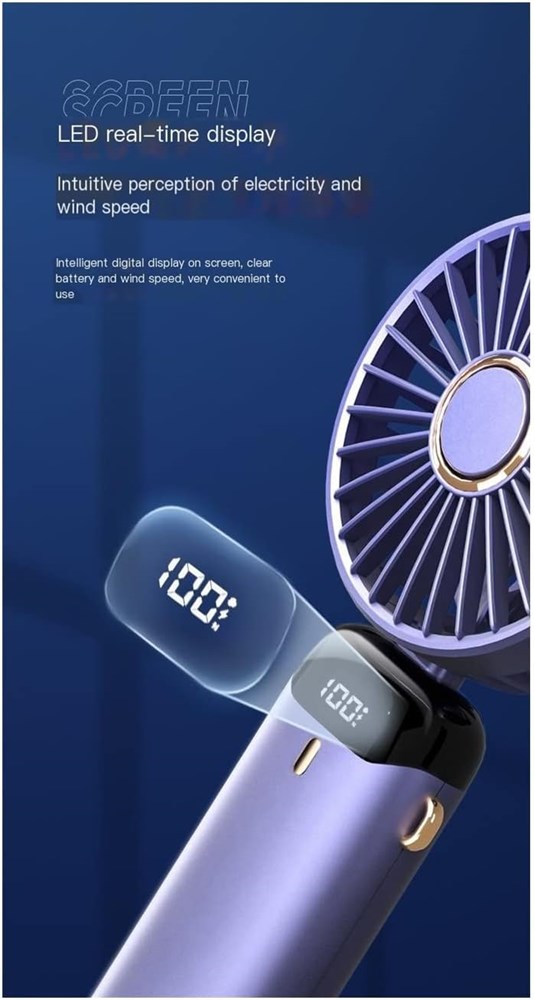 MNASH hand held fan rechargeable 3 speed 5000Mah USB handheld fan, mini digital display folding small fan for outdoor office use (Color : A, Size : 18.8 * 9cm)