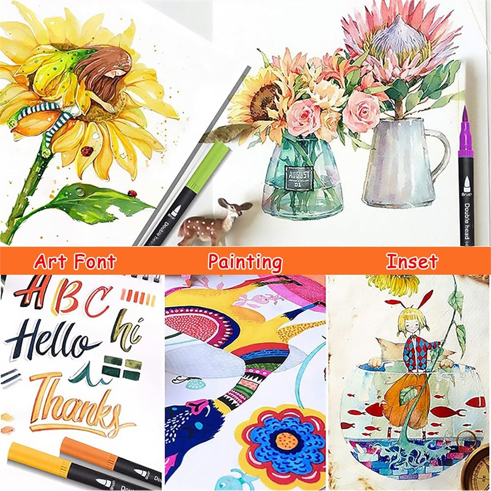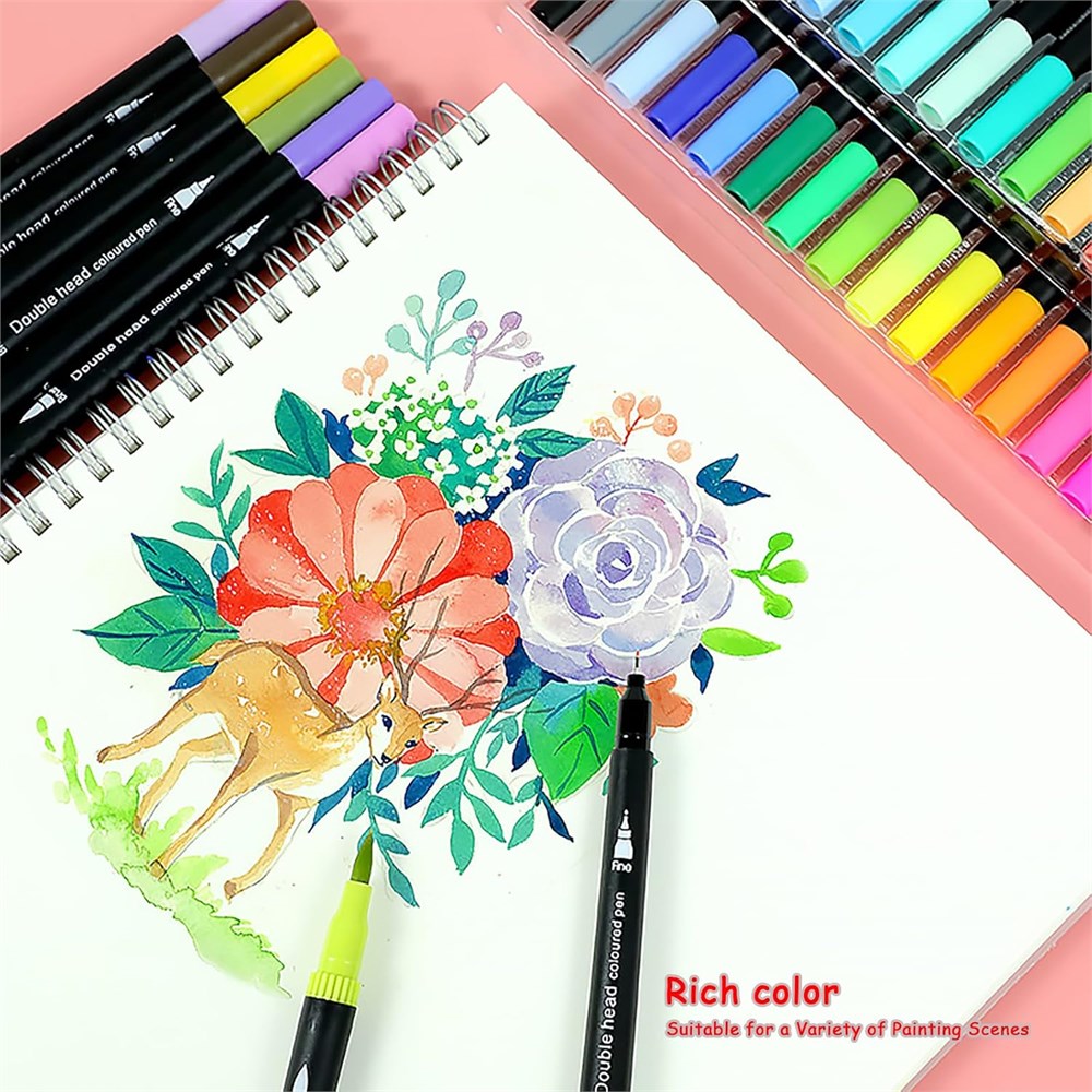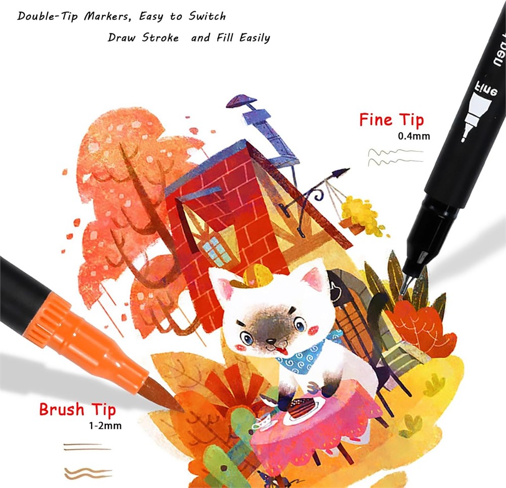 80 COLOR VARIETY FOR CREATIVE FREEDOM: Ideal for professionals and beginners alike, these 80 vibrant colors are perfect for adult coloring books, art projects, calligraphy, and more. The wide range ensures you always have the right shade DUAL BRUSH MARKERS FOR PRECISION AND VERSATILITY: Each marker features a fine tip for detailed work and a soft brush tip for bold strokes. Dual Brush Markers design is great for intricate patterns and large area designs in adult coloring books and DIY crafts FAST-DRYING NON-BLEEDING INK FOR CLEAN RESULTS: Our water-based formula dries quickly to prevent smudging, ensuring your artwork stays crisp. Non-Bleeding Ink keeps pages clean and vibrant, perfect for all types of paper NON-TOXIC SAFETY WATER-BASED INK: Made with friendly, acid-free, non-toxic ink, these markers are safe for everyone. Use them confidently for any creative project VERSATILE DUAL BRUSH MARKER SET FOR EVERY OCCASION: Celebrate milestones like birthdays or holidays with personalized gifts or add a touch of creativity to your DIY projects. This set is perfect for handcrafting, adult coloring, and special events WARM REMINDER: This product is not intended for use by 14 years old and under.