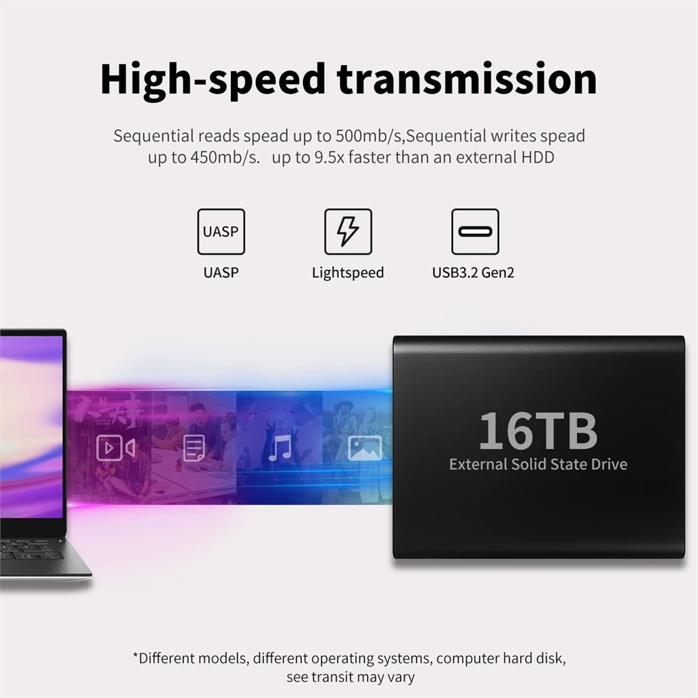 WIOTA External Hard Drive 16TB, Portable Hard Drive 16TB - Ultra High-Speed SSD External Hard Drive with Reading Speeds up to 500Mb/s, 16 Terabyte External Hard Drive Storage for Mac/Windows.