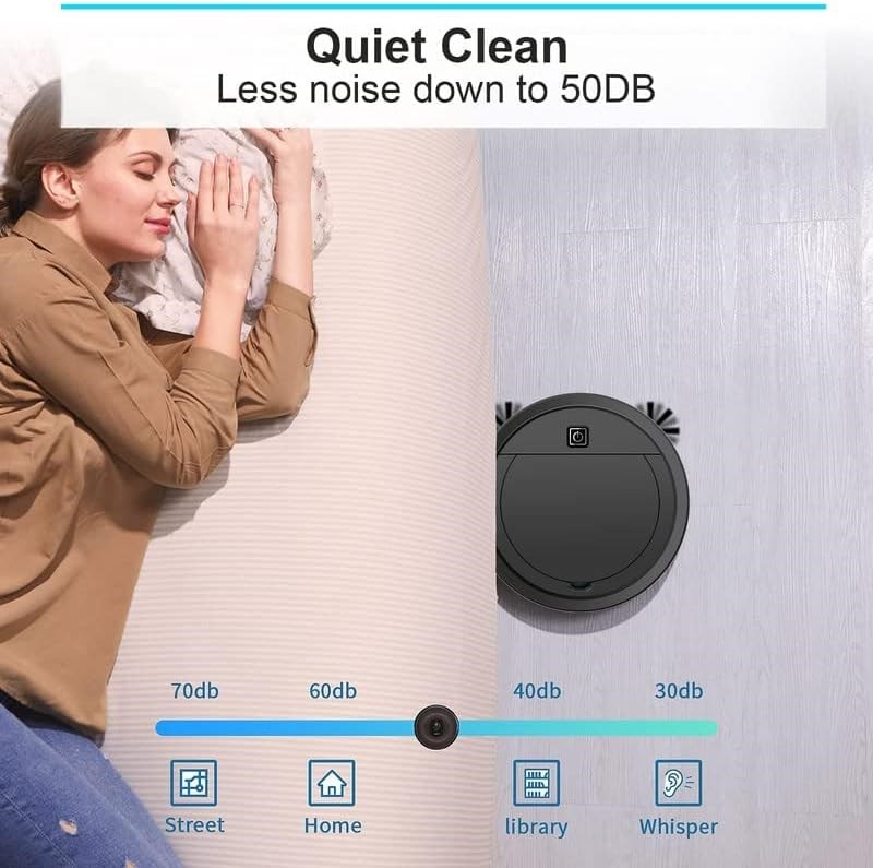2-In-1 Vacuum and Mop : Get brighter floors with simultaneous vacuuming and mopping. Get up to 1200Pa of power suction with minimum noise and a slim design. Low enough to reach under beds, sofas, and areas where dirt hides. Orderly cleaning : Effectively and quickly clean your floor. The anti-tangling main brush and side brush keep clean uninterrupted; while cleaning,the cleaning mop will help you wipe the ground immediately. Automatic steering : The sweeping robot works according to its route. When encountering obstacles, it can automatically turn 360 to complete its cleaning task. Ideal choice for pet households : Effectively clean pet hair, without getting stuck in hair, and no longer worrying about hair tangles. The largest capacity trash can can hold more dirt each time it is cleaned. Less noise : The vacuum robot is quiet enough, even if you vacuum while working or sleeping at home, you will not feel the noise.