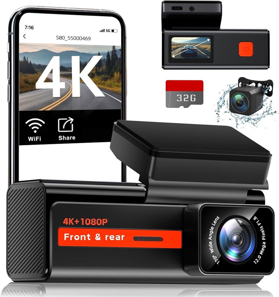 Experience Road Journeys in Stunning Detail Veement S80 dash cam is your all-in-one road companion, capturing every moment with simultaneous 4K(3840x2160P@30fps) UHD front and 1080p(1920x180P@30fps) rear recording. With 4K car dash cam front and back wide-angle lens ensures you don't miss a thing, whether it's the beauty of the open road or unexpected road incidents. Day and Night Clarity and Safety 4k dash camera front and rear is your trusty guardian on the road, offering super night vision technology and a wide F1.6 aperture for crystal-clear footage even in low-light conditions. Feel secure and prepared car dash camera during your night drives or unexpected weather changes. Enhanced Viewing on a 1.47-Inch IPS Display Veement wireless dash cam enhances your viewing experience with its 1.47" HD IPS display. Review your recordings in clear and vibrant detail, adjust settings, and relive your adventures on the spot. Whether you're capturing stunning landscapes or documenting essential evidence with dash cam, S80 simplifies your 4K dash cam experience. Continuous Recording for Peace of Mind S80 dash cam for cars features seamless loop recording, ensuring your latest journeys, events, and unexpected incidents are securely archived. Your road stories are protected. Effortless Connectivity and Sharing Stay connected and share your road adventures seamlessly with 4k dashcams for cars. Wi-Fi connection and user-friendly mobile app. Start using Veement dashcam, and share memorable moments with friends and family, from scenic road trips to humorous traffic encounters.