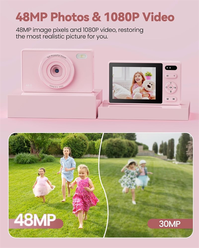 Photos 48 MP et vid o 1080p : refusez les images floues. Pr serve les moments importants. L'appareil photo num rique 2024 dispose d'un cran couleur IPS de 2,4 pouces qui offre une vue claire et capture rapidement les meilleurs moments de la vie. Avec un microphone et un haut-parleur int gr s, les enfants peuvent galement filmer des vid os pour enregistrer leurs aventures et partager leurs cr ations avec la famille et les amis. L'utilisation simple am liore l'exp rience de prise de vue pour les enfants et les d butants et augmente leur int r t pour la photographie. Grande m moire de 64 Go et 2 piles : vous vous plaignez toujours de la petite m moire ou de la batterie faible ? Cet appareil photo num rique est livr avec une carte SD de 64 Go (carte SD doit tre format e) qui peut stocker plus de 20 000 photos, de sorte que tous vos souvenirs importants seront parfaitement enregistr s. quip de deux batteries au lithium haute capacit , il peut continuer prendre des photos pendant 3 heures sans mise sous tension, de sorte que vous n'avez plus vous soucier de manquer d' nergie. Polyvalence et plaisir : stimule l'int r t. Apprenez de nouvelles comp tences plus facilement ! Cet appareil photo num rique est quip de nombreuses fonctions amusantes et simples. Tels que le zoom 16x, une vari t de filtres, retardateur, prise de vue continue, visage de beaut , d tection de visage souriant et d'autres fonctions. Ces caract ristiques sont parfaites pour satisfaire la curiosit et la cr ativit des enfants, leur permettant de ma triser une nouvelle comp tence photographique de mani re divertissante. Les utilisateurs peuvent galement connecter l'appareil photo num rique un ordinateur via un c ble USB et l'utiliser comme webcam pour diffuser en direct sur les plateformes de m dias sociaux. Portable et durable : l'appareil photo num rique BMDSAE est fabriqu en mat riaux durables, et le design ergonomique et la distribution des boutons le rendent facile utiliser pour les d butants. Taille compacte (120 g), la taille de la main d'un enfant. Le colis est livr avec un cordon, vous pouvez accrocher l'appareil photo autour de votre cou ou le mettre dans votre poche et le transporter avec vous, parfait pour les voyages, le camping, les r unions de famille et l'enregistrement de la vie amusante. Cadeau parfait et service fiable : vous avez toujours du mal avec les cadeaux de No l ? N'h sitez pas ! Cet appareil photo num rique a un bel emballage et facile utiliser, c'est un cadeau de vacances parfait et une surprise d'anniversaire pour les gar ons et les filles, parfait pour tre le premier appareil photo de leur vie et inspirer les enfants explorer le monde. Parall lement, l' quipe de service client BMDSAE travaillera dur pour aider nos pr cieux clients r soudre tout probl me, vous pouvez nous contacter tout moment (garantie d'un an)