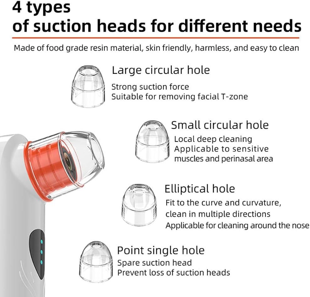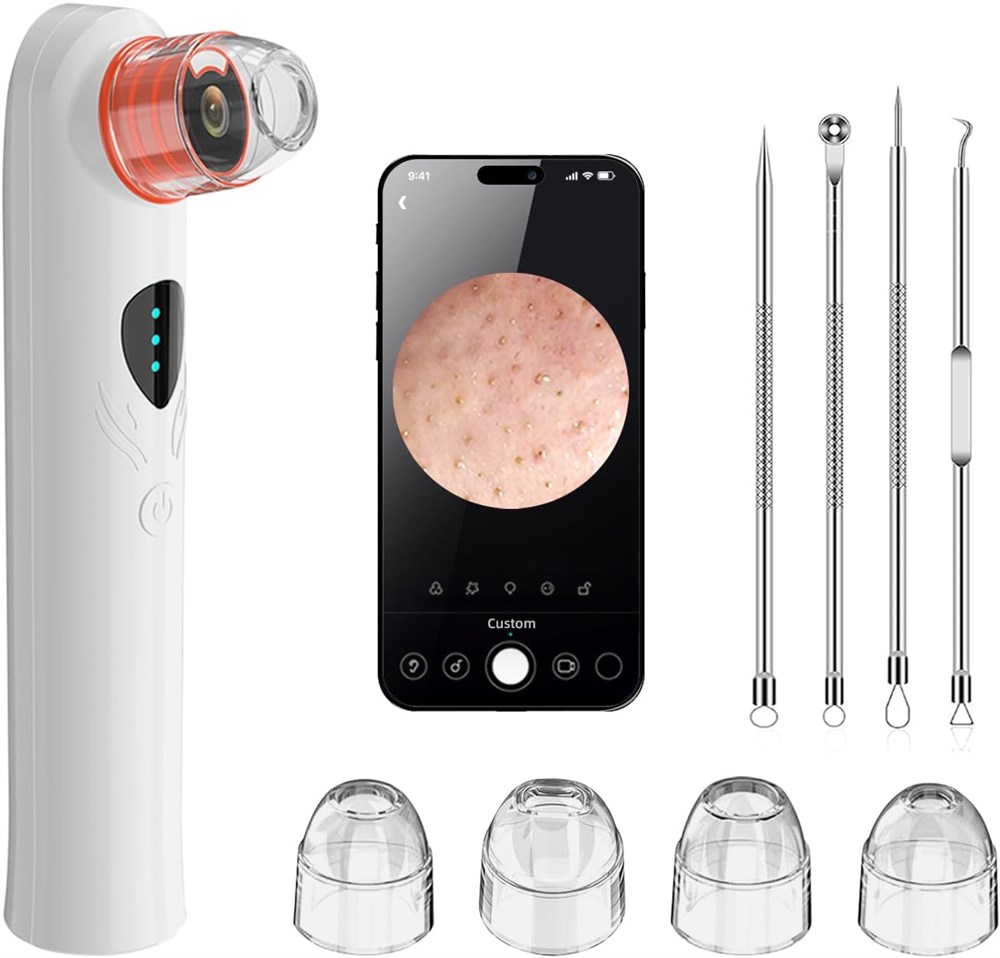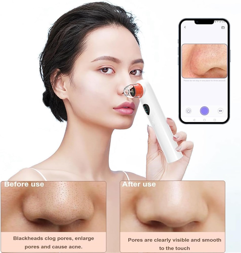 Blackhead Remover Tool with HD Camera Blackhead remover vacuum cleaner built-in HD camera and LED lights , can magnify the skin 20 times, which can avoid blindly cleaning the blackheads ,can clearly see the process of acne removal, support photo & video recording than the traditional acne tools more practical and effective.Effective blackhead removal,acne remover,grease,pimple,whiteheads,dead leather. 3 Suction Power Levels&4 Replaceable Probes Our pore vacuum has 3 different powerful suction levels suitable for different types can be freely adjusted according to your skin's sensitivity of skin How to Use 1. Hot compresses with a hot towel or facial steamer for about 3-5 minutes to open pores and soften blackheads, 2. Scan the manual QR code to download the APP, 3. Long press the blackhead vacuum power button to turn on, 4. Open the phone WiFi to find (HTY-xxxxxx) connect, 5. after returning to the APP you can start using.Don't stay on the same area for more than 3 seconds to avoid reddish purple. What you'll get Blackhead remover x 1, stainless steel blackhead remover tools x 4, USB charging cable x 1, product manual x 1, a variety of accessories only to give you a better shopping experience Ideal Gift The blackhead remover is exquisite and portable, ideal for anniversary, mother's day, Christmas, birthday, new year and holiday gifts.