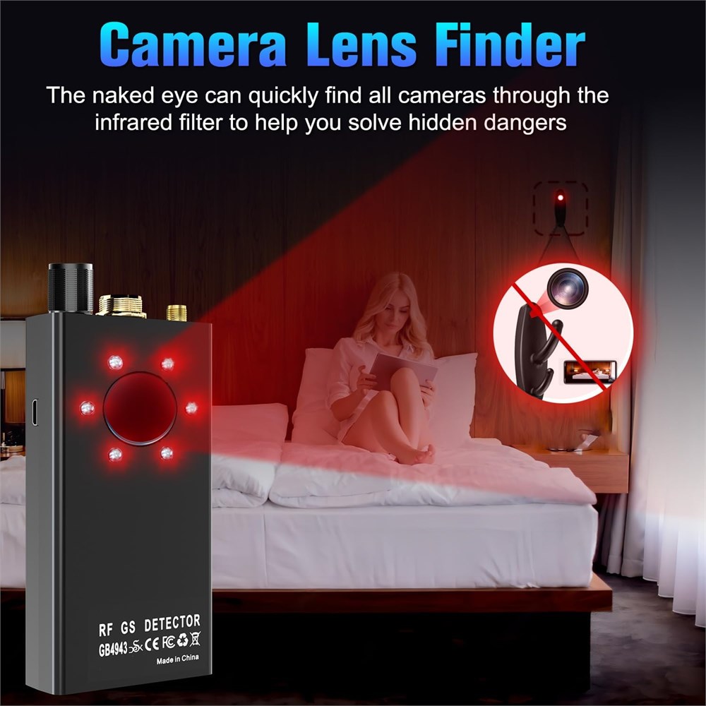 Professional Hidden Device Detector This Anti Spy detector can accurately detect hidden devices, it can help you detect various hidden bug devices surround you, such as hidden camera, magnetic GPS tracker, pinhole camera, GSM/3G/4G bugs, and other spy devices. effectively protect your privacy safe. Multi-Function & Easy to Use Our bug detector provides 3-in 1 multifunctional detection, WIFI device detection, camera lens finder, magnetic field detection. Only two buttons, very easy to setup, works out of box. It is the Ideal professional detector, Anti surveillance sweeper, spy camera hidden camera detector, spy Camera finder, GPS detector to satisfy your diverse needs and make you feel safer and happier Built-in Germany Advanced Chipset Adopting Germany advanced technology, with ultra-high sensitivity and strong anti-interference, can be adjusted according to your actual demand, 15 square meters detection range, vibration mode and sound mode. you can choose vibration mode when you don t like the noisy sound alarm. Believe our detector will bring you a perfect experience, you deserve it. Portable and Durable smaller than other detectors, easy to carry during travel, built-in chargeable battery, which can continuously work for several hours and last for months in standby mode. This bug sweeper are frequently used in fitting room, bathrooms, conference rooms, cars (unwanted magnetic GPS trackers) and etc.
