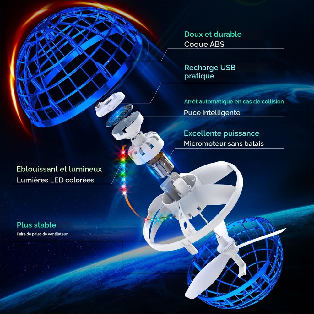 Plusieurs fa ons de jouer La balle volante offre plusieurs fa ons de profiter du jeu, permettant aux enfants d'explorer comment elle se d place dans les airs. chaque lancer, ils peuvent remarquer diff rents styles de jeu et la vari t qu'il offre. Les lumi res RVB int gr es s'allument pendant le vol, montrant des effets lumineux qui mettent en vidence le mouvement du jouet. Il combine mouvement et lumi re pour ajouter des exp riences de jeu attrayantes. Amusant en famille interactif : cette balle volante est con ue pour les enfants g s de 6 ans et plus. Les enfants peuvent jouer avec la famille ou les amis, essayant diff rentes fa ons de lancer et d'attraper. La vari t de jeux soutient les activit s de groupe et ajoute de l'int r t au jeu quotidien. Durable et l ger : fabriqu partir de mat riau PP, le globe est l ger et con u pour r sister une utilisation r p t e. Le filet 360 prot ge le m canisme int rieur, et la balle s'arr te automatiquement quand elle se cogne quelque chose, permettant aux enfants de continuer utiliser le jouet. Portable et rechargeable : compacte et l g re, la boule Flying Orb se recharge avec un c ble USB et tient dans un sac dos ou une poche. Il peut tre utilis la fois l'int rieur et l'ext rieur, permettant aux enfants de jouer la maison, dans la cour ou dans un parc. Cadeau sympa pour les enfants : la boule d'orbe volante est un jouet pour les gar ons et les filles g s de 6 12 ans, y compris les adolescents. Il est adapt comme cadeau d'anniversaire, de No l, de P ques ou comme cadeau de No l pour les enfants. Les parents peuvent l'offrir comme surprise que les enfants appr cieront.