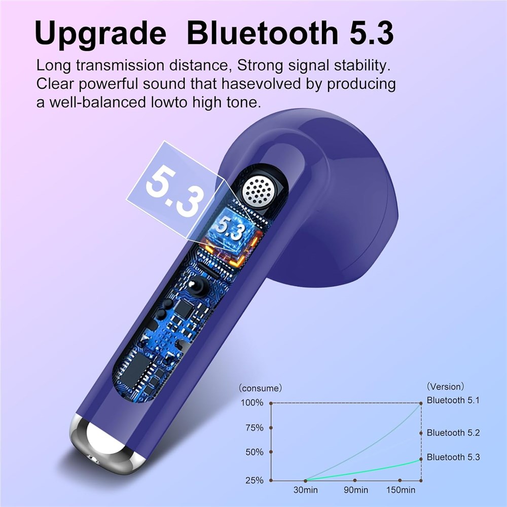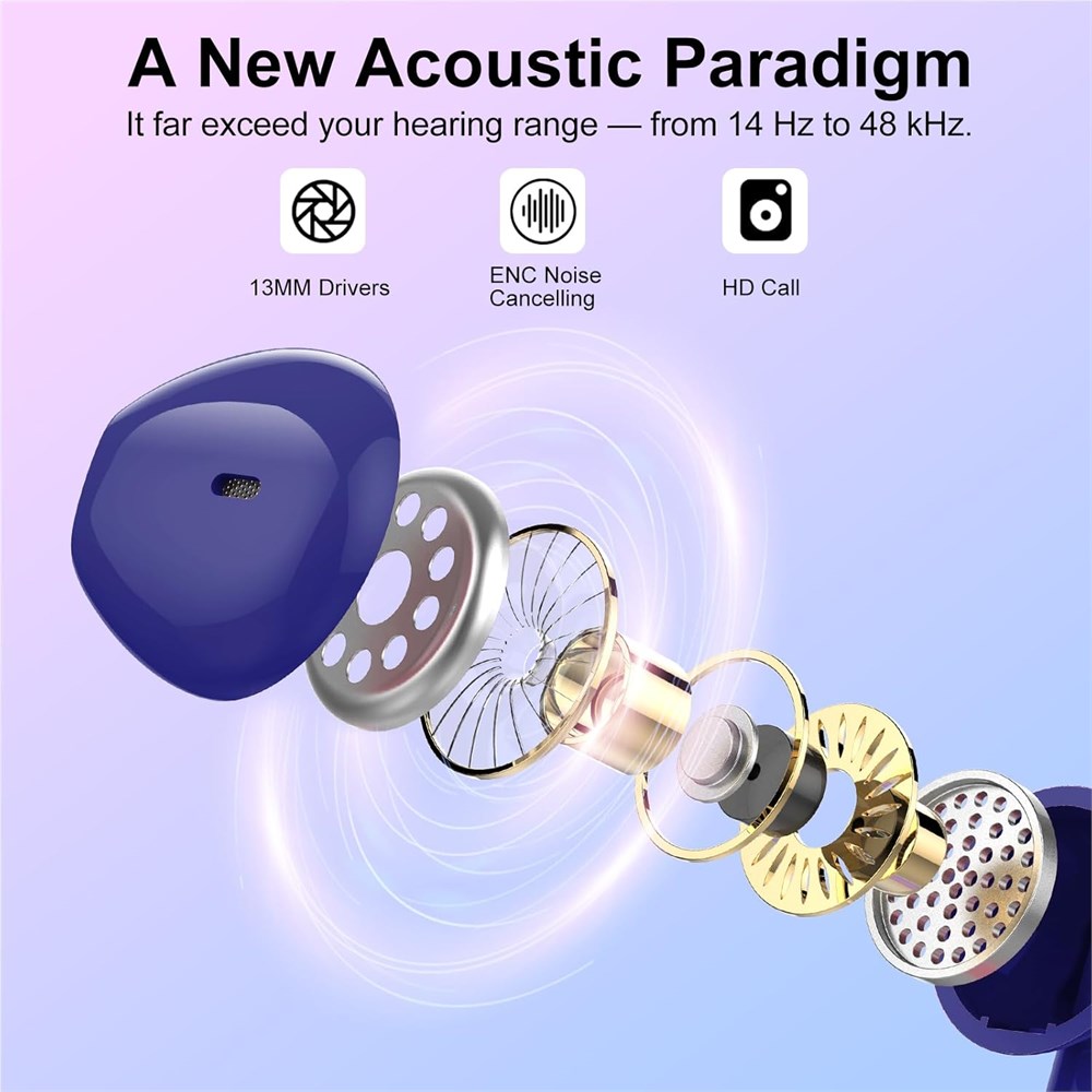 Bluetooth 5.3 and Seamless Pairing: Our wireless earbuds Adopt brand new Bluetooth 5.3 technology, providing an impressive 15-meter ultra-wide range and a robust connection, with transmission speeds reaching 48 Mbit/s. This means our earbuds not only offer an incredibly stable signal but also deliver enhanced sound quality and reduced power consumption. After the initial setup, reconnecting your bluetooth earphones is as simple as opening the charging case. It's effortless and lightning-fast. Immersive Stereo Sound and Superior Clear Call: These wireless headphones boast a 13mm speaker and a triple-layer composite diaphragm, enhanced with AAC/SBC audio coding technology, to provide rich bass, crisp highs, and precise mids. The earbuds wireless bluetooth are equipped with four microphones and ENC (Environmental Noise Cancellation) technology, which effectively eliminates 85% of background noise during calls, ensuring a crystal-clear calling experience. Say Goodbye to Frequent Recharging: These Ear buds bluetooth offer a remarkable 6-7 hours of top-notch audio playback on just a 1 hour charge. Plus, the accompanying charging case delivers an extra 4 charges, delivering a whopping 30 hours of total playtime. These headphones also come with a handy smart LED display, making it effortless to keep tabs on the battery levels for both the earbuds and the charging case, ensuring you always know when it's time to recharge. Waterproof and Comfortable Mini Design: These noise cancelling earbuds are equipped with IP7 nano-coating technology, ensuring they remain protected from sweat or rain. This allows you to use headset in any weather conditions, making them the perfect partner for activities like running, yoga, cycling, and more. The ergonomic design ensures a snug and comfortable fit in your ears, even during extended use wireless earbuds bluetooth, you won't have to worry about discomfort or them slipping out. Touch Control and Broad Compatibility: These earphones wireless feature highly responsive touch technology, enabling you to effortlessly perform various functions such as play/pause, answer/reject calls, adjust volume, switch tracks, and activate voice assistants. Thanks to the Bluetooth 5.3 chip, these true wireless earbuds have great compatibility, allowing them to seamlessly connect with nearly any Bluetooth audio device.