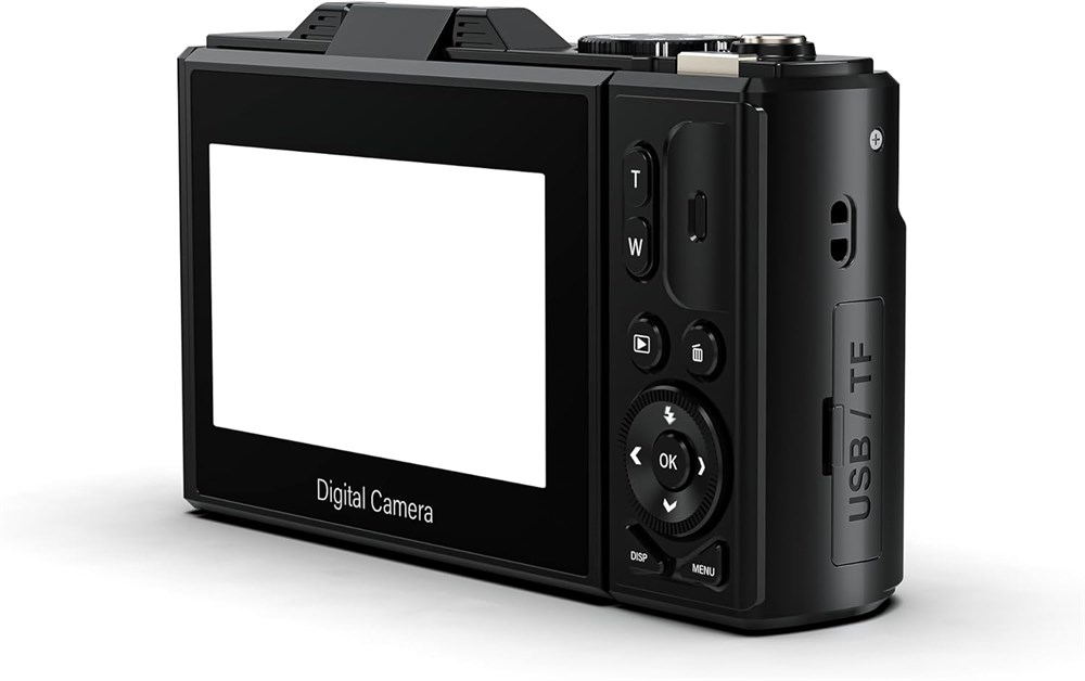 4K and 64MP This 4K digital camera captures stunning 64-megapixel images and shoots vibrant 4K video with rich colors and sharp details. Use our photography digital camera to capture the laughter at family gatherings or the intricate landscapes during solo hiking adventures. Autofocus and 18x digital zoom With our kids digital camera's quick autofocus feature, you'll never miss your child's first bike ride. Whether snapping photos or recording videos, this photography camera allows you to capture life's most precious moments in stunning high definition and discover new perspectives with 18x digital zoom. Vlogging Camera and LED Light Our compact digital camera comes with a 180 flip screen and supports LED light and fill-in shooting, even in low-light or dark environments. Connect to your computer with the included USB cable not only to transfer your shooting files but also to use it as a webcam for video calls or livestreaming on Youtube. Multifunctional Mode Dial Unlock your creativity with the 9-mode dial of our digital camera, including Photo, Auto, Timer, Burst, Video, Slow Motion, Time Lapse, Loop, and Video+Photo modes. This user-friendly camera is your reliable companion for capturing life's vitality, supporting external lenses and a 3.5mm microphone for enhanced versatility. Rechargeable Battery and 32GB SD Card This compact camera comes with two high-capacity batteries and a 32GB SD card, ensuring you never miss any exciting moments. Each battery can record 4K video for up to 80 minutes when fully charged. Additionally, the camera is tripod-compatible, perfect for stabilizing long shots during vacations and camping trips.