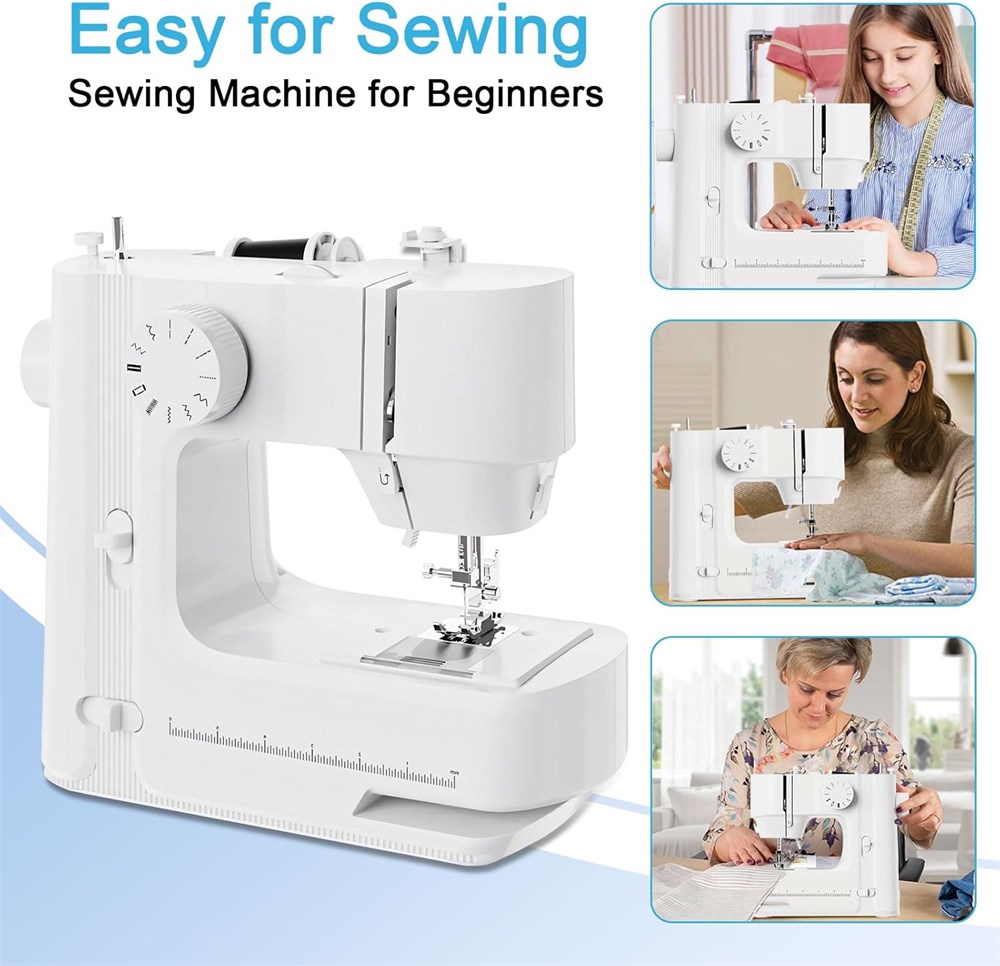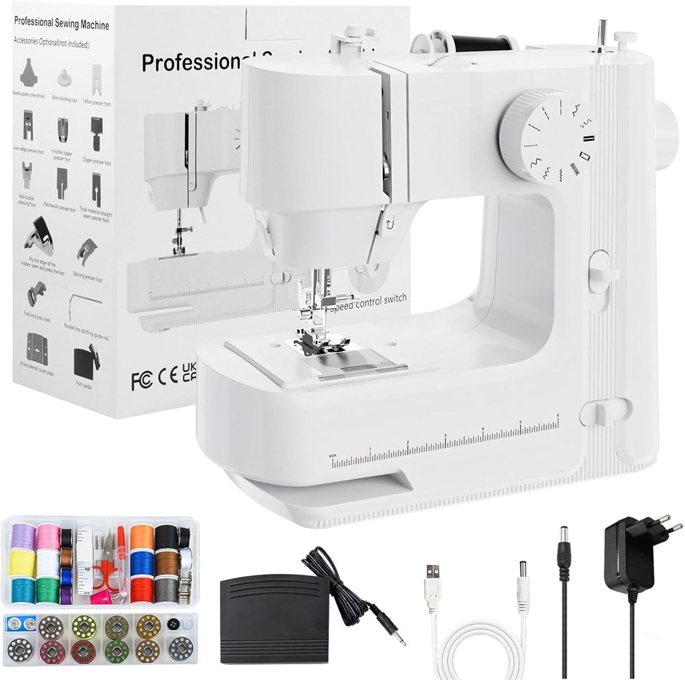 Beginner Sewing Machine Upgraded with new technology, increasing power and reducing noise, this sewing machine is simple to operate, versatile, light weight and durable. This item is designed with a mini size (11" in length, 10.6" in height, 4.7" in width ) LED Light Our sewing machine LED light feature has many advantages, and I believe it will bring a lot of convenience to your sewing work: The LED light provides bright light, allowing you to see every detail of the sewing material. Whether you are making simple changes or complex designs, the bright light can provide you with a good view. The LED light emits natural and comfortable light without irritating your eyes. Dual-Speed Functionality Two-speed adjustable electric small sewing machine has forward&reverse knob, sewing is more convenient. The stitch can be choose, and ending sewing easier. It is not complicated but meets the basic sewing needs of most households. Suitable for various materials It is applicable for a variety of items and fabrics, such as clothing, silk, jeans, wool, hem pants, curtains, holes, toys and crafts. Practical Sewing Kit Each package comes with a threading needle, coil, and wire ends etc, ensuring you have everything you need to get started. You can set it up in no time and start sewing your projects immediately. It's not just a sewing machine, but a complete kit to fulfill all your sewing needs.