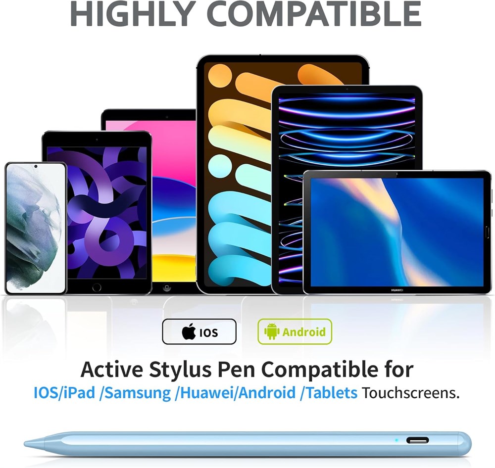 Precise and sensitive: Stylus Pen has tilt sensitivity, premium 1.5 mm nib, pixel precision and sensitive touch technology provides better accuracy and compatibility without delays and disconnections, allowing you to create with maximum precision at all times. There is magnetic suction for iPad Pro 12.9' 3rd and 4th generation, iPad Pro 11. Portable and not easy to lose. Wide range of application: Support includes iPad 10th/ 9th/ Pro/ Mini/ Air, Phone 13/12/12P/ XS/ XS MAX/ XR/ X/ 8/ 8 plus/ 7/ 7 plus/ 6S/ 6 plus, and other smartphones and tablets (iOS/ Android) devices, it can give you a comfortable writing and drawing experience. Note:Windows is not yet supported. Convenient and easy: No apps to install. Just tap the pen cap to let you easily enjoy smooth writing or drawing, create anything without limitation, perfect for your school, business trip, meeting and home. It can also be used as a novelty gift for your family/friends around you who love to create. Efficient and durable: The product comes with a USB charging port and a built-in battery that allows you to use it for 20 hours after only 1 hour of charging. The Stylus Pen automatically enters sleep mode after 5 minutes of inactivity and automatically turns off the power every 30 minutes, which can extend the life of the stylus. Notice What if the stylus pen doesn't work on the i-Pad? Please disconnect your Pad from the App|e Pencil first, and if there is a switch inside the app for Apple-Pencil use only, please turn it off. 2)Why doesn't this stylus work on notability? Please modify your settings in the app to use it. Click "Info" in Notability - find " App|e Pencil :" - select "Disconnect", then you can use it normally. Other applications where the stylus doesn't work can refer to this operation. (GoodNotes/Note)