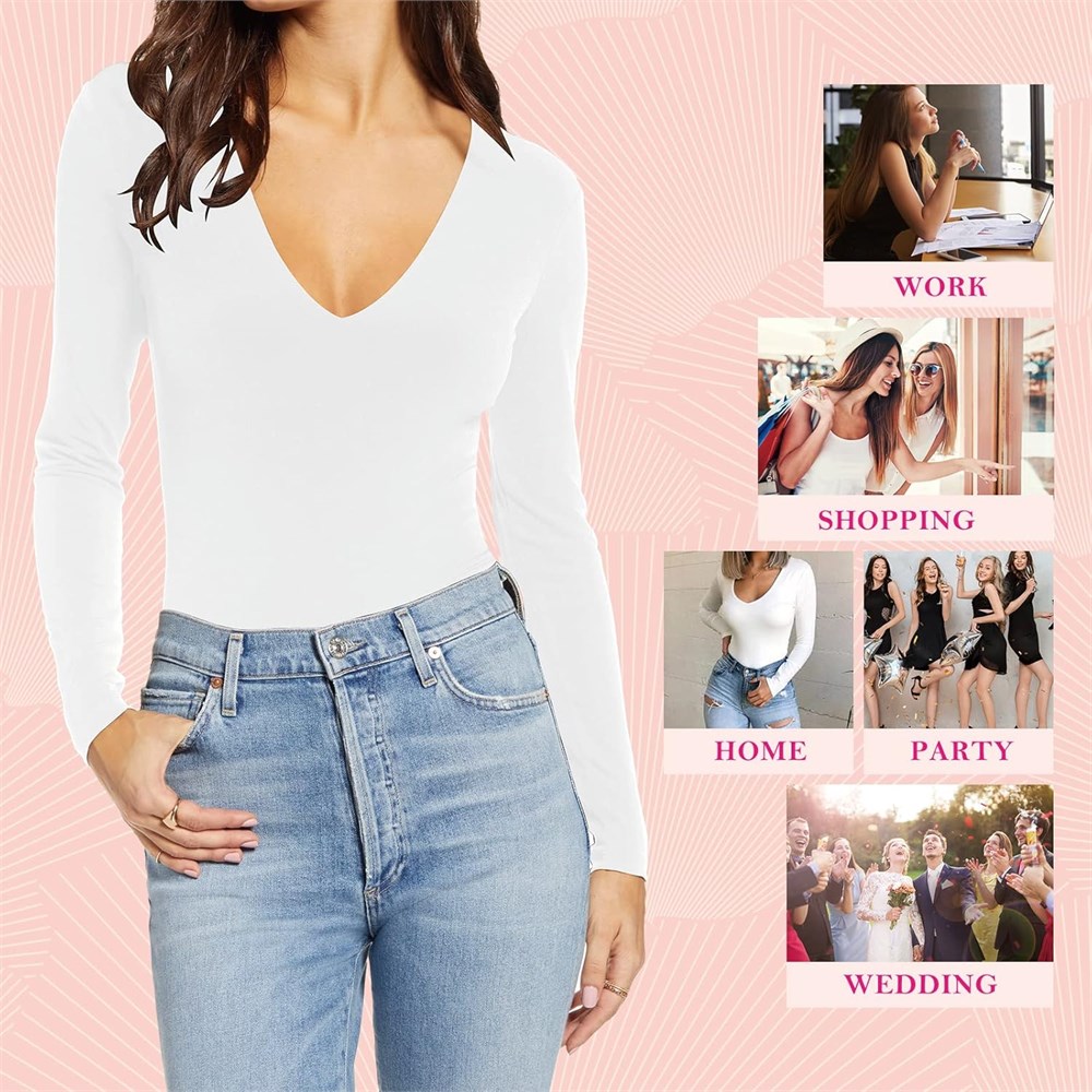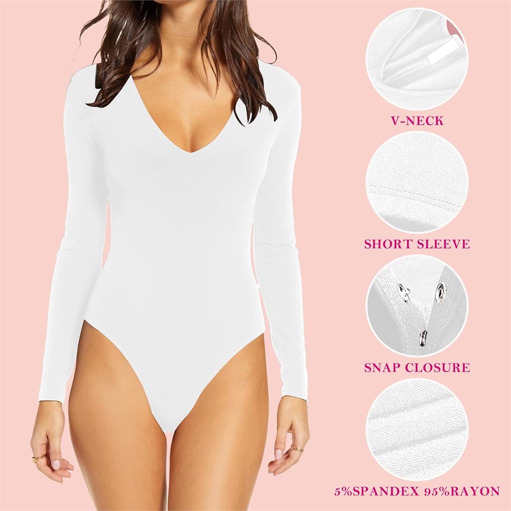 Unique Fabric This women's bodysuit features stretchy, silky, soft fabrics, as well as a minimalist design with a V-shaped neckline and fitted sleeves. It offers a super soft, flattering and body-hugging feel that fits you perfectly, presents your figure perfectly and fits your hips Intimate design The bottom with a small buckle, for women's tights closed. It's easy to put on, and it doesn't stick up! It's easy to go to the bathroom, you don't have to take off your tights, and you can get in and out of anywhere gracefully. V-neck tights are designed to make your beauty more natural. Long sleeved tights make it easy to get through any summer day. This V-neck jumpsuit will bring you more compliments Super easy to match The foundation of a great wardrobe. It's super easy to wear with anything, such as high-waisted skirts, jeans, skirts, shorts, jogging shirts, jackets, coats, etc., or with heels, sneakers, sandals. When you go to work or shopping, a necklace will make you feel more confident and perfect Any Occasion This V-neck Slim casual women's tights suit any occasion, suitable for cocktail parties, sports, dates, parties, soireas, dance shows, work, club, beach, school or just casual everyday wear. This stylish bodysuit will achieve exactly the sexy, beautiful and elegant effect you want for any occasion Note "white" and "nude" tights look a little see-through, it is recommended to wear a nude or light colored bra or underwear. Due to computer image resolution and monitor Settings, the color or printing of this onesie may vary slightly depending on the site. Please read the size sheet carefully before buying. Show yourself with confidence and we expect your beauty.