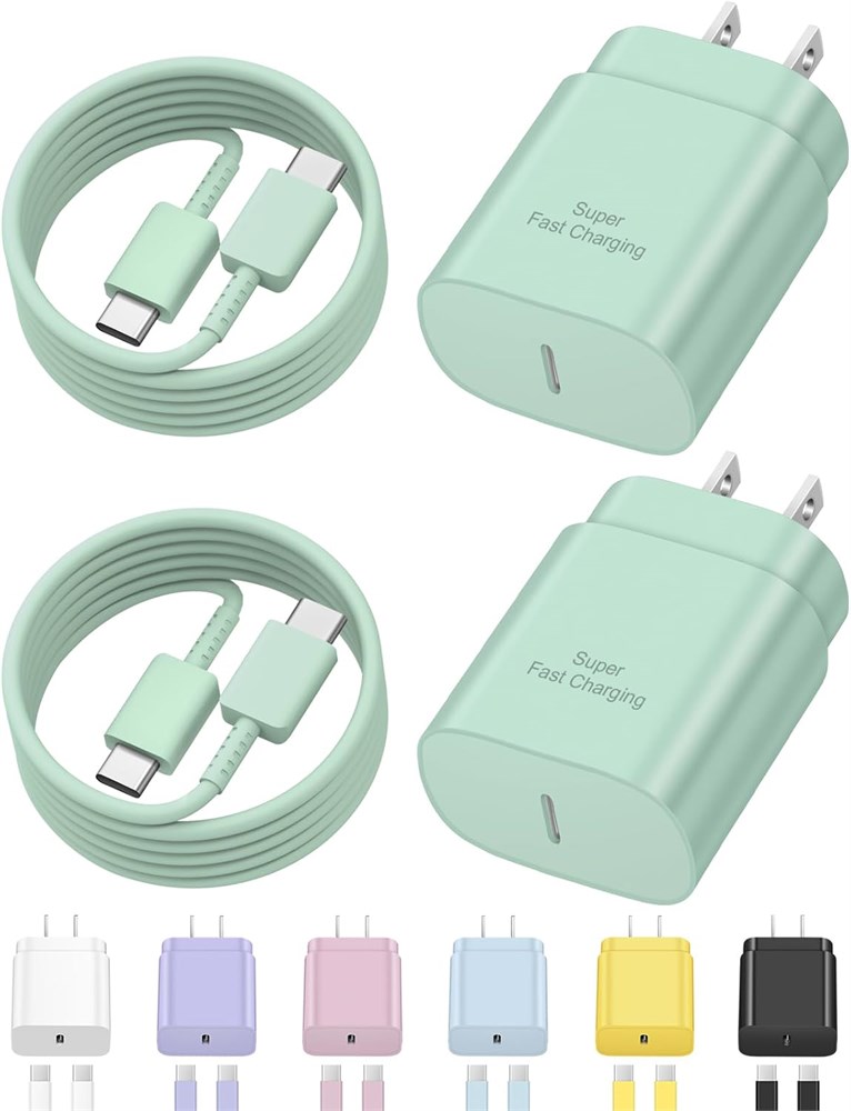 Fast Wall Charger 25W PD USB Type C power delivery wall plug, PD adapter 3.0 Quickly Charge USB C port provides Max 25W output power, Adaptive fast charger charges from 0 to 50% in just 30 minutes, 75% faster than standard chargers. Helps You Work Efficiently. Universal Compatibility Compatible with Galaxy S23/S23 Ultra/ S22/S22 Ultra/ S22 Plus/S21/S21 Ultra/S20/ S20 Plus/ S20 Ultra/ S10/ S10e/ S10 Plus/ S9/ S9 Plus/ S8/ S8 Plus/ Note8/ Note9/ Note10/ Note20/ Note20 Ultra/ A20 A50/ Google Pixel 2/ LG V20/ V30/ and other USB Type C cable device. USB-C Charger Cable : Fast Charging cable reduced charging cable resistance enable the provision of the fastest possible charge via any type-C charger. Length of 6.5feet, easy for charging on different occasions, for travel, home, car, office, etc. PD 3.0 Wall Charger : The charger Internal high-quality chips protect your devices from overheating, short-circuiting, and overcharging. Our technology teams make tens of thousands of tests to ensure users' and devices' safety. Protection from over-current, over-charging, short-circuiting, without any risk of overheating or damaging your devices, providing a safe charge.