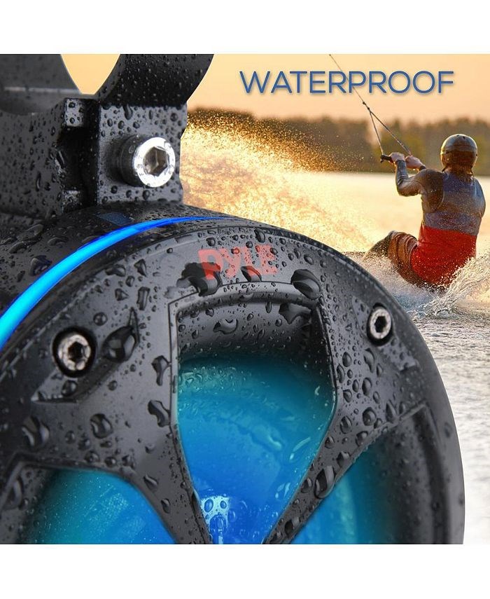 Enhance your off-road and marine adventures with Pyle's 4 Waterproof RGB Speaker System. Featuring Bluetooth connectivity, a rugged IP-X5 waterproof design, and integrated RGB lighting, these speakers deliver 800W of powerful audio. The included Bluetooth control unit enables wireless streaming, while the compact design and universal mounting make it perfect for ATVs, UTVs, Jeeps, and marine vehicles. Pro Audio PowerSport Speakers with RGB Lights. Compact and High-Powered Output. Marine Grade Waterproof Rated Construction. Weatherproof and Water-Resistant Housing. Sound System: (2) x 4.0' Woofers + (2) x 0.5 Tweeters. Imported.