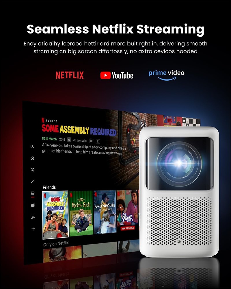 Licensed and Built-in Netflix: Enjoy instant access to your favorite shows and movies with built-in Netflix, YouTube, and Prime Video. No extra devices needed everything is ready in this mini projector. Stunning Visual Clarity: Experience sharp, vibrant visuals with native 1080p resolution and 400 ISO lumens of brightness, enhanced with HDR10 and HLG. Immersive Sound: Elevate your audio experience with dual 6W speakers and Dolby Audio. Crisp, clear sound fills the room, making it an ideal movie projector. Setup in Seconds: Say goodbye to manual adjustments! This smart projector features instant auto focus, keystone correction, screen fit. Compact and Portable Design: The Dangbei N2 Projector features a sleek and compact size of 7.76 x 5.12 x 8.15 inches, making it easy to carry for outdoor adventures or move around the house. Its small footprint ensures it fits perfectly in any room, including the living room, without taking up much space. Ideal for both indoor and outdoor entertainment.
