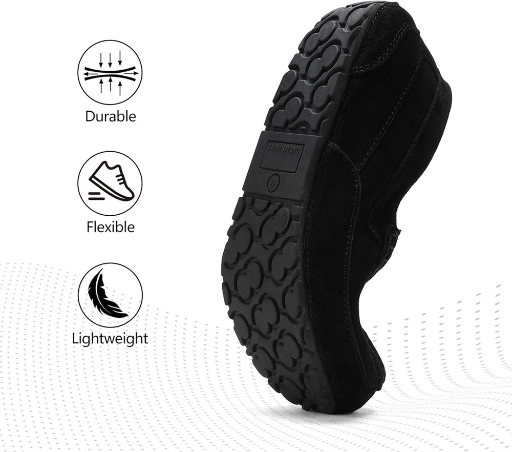 Tige en 100 % cuir daim : La tige en cuir daim rend ces mocassins de maison douces, respirants et durables. Ils ne sont pas faciles plier ou d former. Ces mocassins offrent un confort optimal. Confortables et chaudes : Doublure en fausse fourrure douce et confortable. Ces mocassins de maison vous permettront de rester d tendu et au chaud pendant l hiver froid. Semelle ext rieure flexible : La semelle ext rieure en caoutchouc TPR motifs offre une bonne adh rence lorsque vous marchez. Ces mocassins d hiver antid rapants sont parfaits pour un port l int rieur ou l ext rieur. Style facile enfiler : Ces mocassins d contract s sont faciles mettre et enlever. Ils offrent un luxe et un confort ultimes.