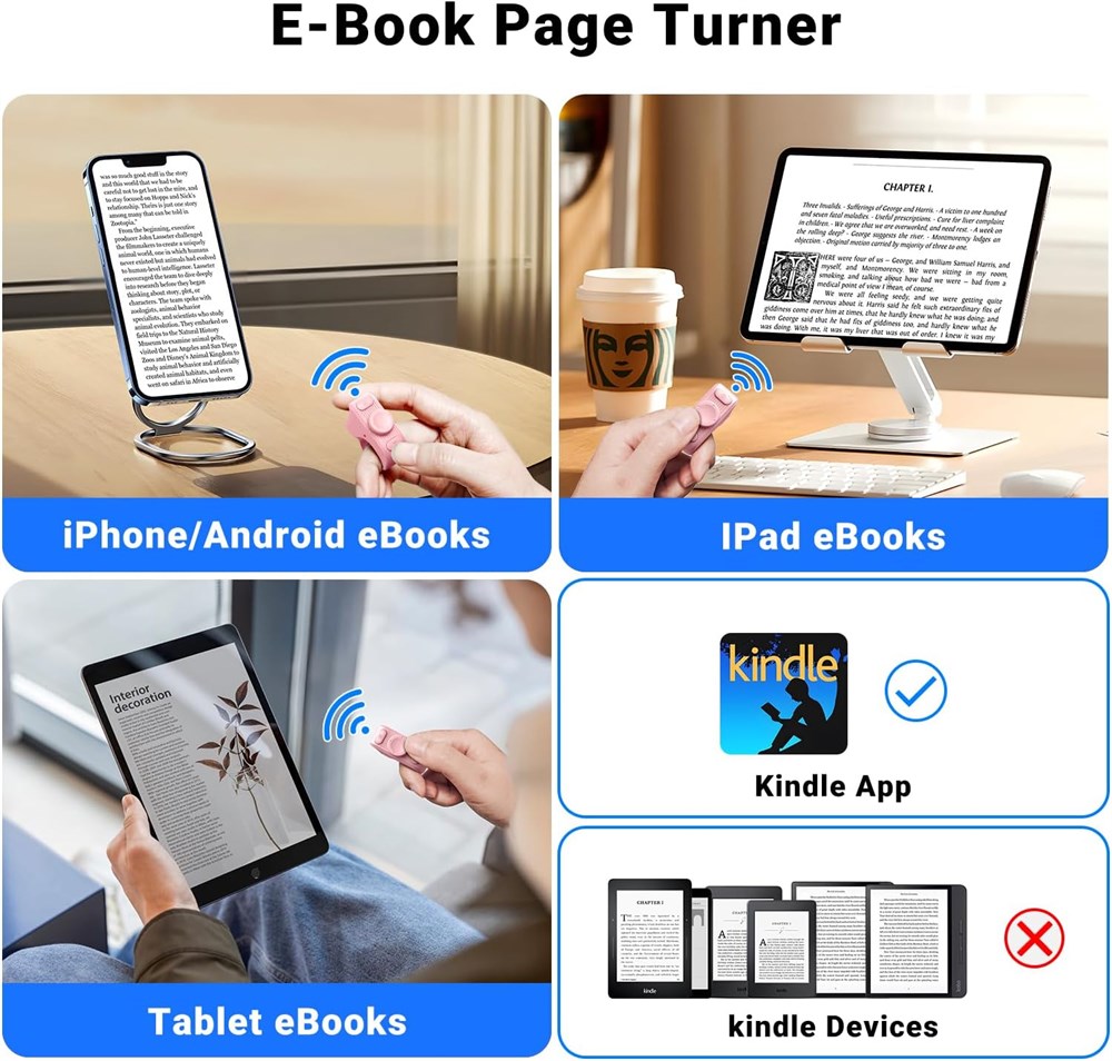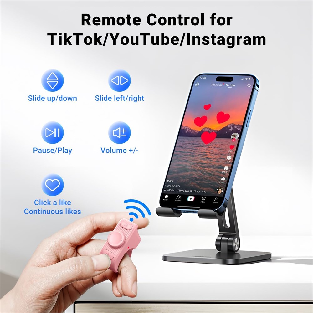 Hands-Free Scrolling Ring for TikTok :No need to touch your screen scroll up/down, pause/play, adjust volume +/-, or like videos with just a tap. The Bluetooth Scrolling Ring offers seamless control for TikTok, YouTube, Instagram, and more short video app. Enjoy effortless interaction with your favorite apps, anytime, anywhere Remote Page Turner for Reading Apps:Enjoy a smooth reading experience with remote page-turning for iOS and Android e-book apps.Whether you're relaxing at home or on the go, simply press the remote ring to flip to the previous or next page without touching your screen. (Note: Not compatible with Kindle devices) Snap, Record & Focus-Remotely:Capture the perfect shot, hands-free. Use the bluetooth ring to remotely snap photos, video recordings, and you can turn on auto focus with remote ring to take clearer photos. Ideal for selfies, vlogging, and creative photography anytime, anywhere Weeks of Power, Minutes to Charge:The MILOUZ ring comes with a sleek portable charging case. Fully charges in just 1.5 hours and powers daily use for weeks. Whether you're traveling, working, or relaxing, it s always ready when you are Featherlight Comfort & Adjustable Ring Size:Crafted from premium, lightweight materials and designed for all-day wear. The adjustable size ring fits all finger sizes comfortably no slipping, no breakage Auto continuous likes & Surprise Gift The scroll ring can realize automatic likes in the live broadcast room easily send thousands of likes without lifting a finger. A perfect surprise for birthdays, holidays, or any special moment.