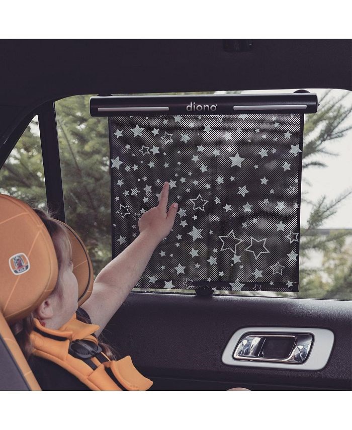 Travel from day to night with Diono's Starry Night Sun Shade - designed with original glow in the dark star print, perfect for entertaining your child both day and night as the sun goes down. GLOW IN THE DARK - The innovative glow in the dark stars create a cool, calming environment to keep your little one entertained. PROTECT FROM THE SUN - Provides complete UVA and UVB protection blocks out the sun's glare and reduces heat to protect on the go. EASY INSTALLATION - Easily attaches to the car window with top and bottom suction cups to attach securely to most car windows, including SUV's. ONE BUTTON REWIND - Easy one button rewind to retract the shade when not in use. UNIVERSAL FIT - Starry Night sun shade is designed to fix to the surface of any window, with top and bottom suction cups to attach securely to most car windows, including SUV's. 100% Polyester. Spot clean. Imported.