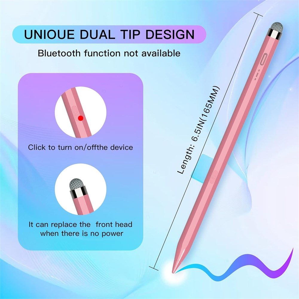 Compatible with Tab A7/A8/A9 Double tip stylus for Samsung Galaxy Tab A9&A9+,Tab A8&Tab A8+,Tab A7/A7 Lite all verison tablets, And all android device. Easy to use Turn on and use, no need for Bluetooth, very convenient (need to disconnect from other pens before use). Press one button to start, without any APP required.Simply touch the Top of the pen to turn on/off .you can use it to take notes, draw, write, create art and more. You can also use pencil for daily use, classroom use and work use. This pencil is a great gift Package includes:1*pencil, 1*type-c charging cable, 2*replacement tip Double Tip&Functional Advantages Unique double tip design, easy to handle learning, work and entertainment. 15 Mins Fast Charging, 9 Hours of Use: 2X Faster Charging speed than others. Just 15 minutes of charging provides an impressive 9 hours of continuous usage, long lasting battery life. This ensures that your creative process is not interrupted. You can use it all day long. This Stylus looks great and has a stylish design. Our Stylus features cutting-edge ergonomics that provide a comfortable grip and fit seamlessly into your hand. Its balanced weight and intuitive design ensure fatigue-free use. Innovative Design Stylus&Perfect Gift Double tip design, Suitable for more scenarios Perfectly Precision: Tilt Sensitivity and High Responsive. Magnetic Attraction, The stylus tip update conductive materials, which makes it more sensitive and precise. No lagging, no skips, no scratches. the tilt technology makes your writing and drawing more freedom than ever. the pen is perfect gifts for children at home learning, drawing, writing, and taking notes. It is also the Best gift for Christmas, Thanksgiving, Valentine's Day,Mother's Day,Father's Day to your family and friends. Exceptional Accuracy Enjoy unparalleled precision in your drawings with our stylus pen outstanding accuracy. Whether you're sketching, annotating, or illustrating, every stroke is captured with impeccable detail, allowing your creativity to flourish.