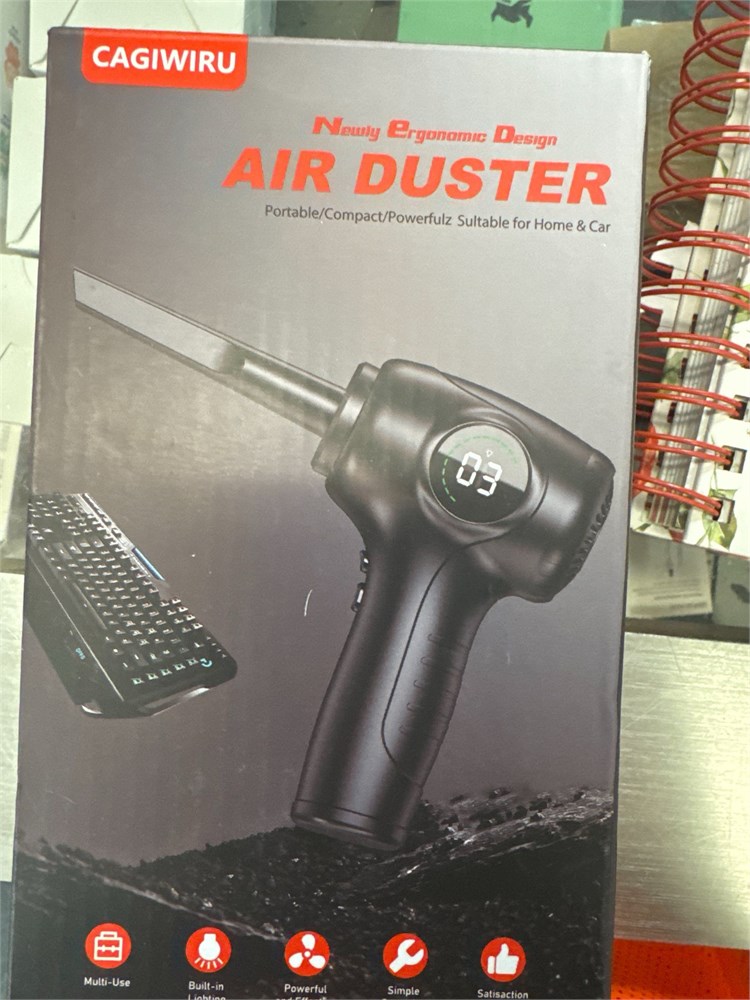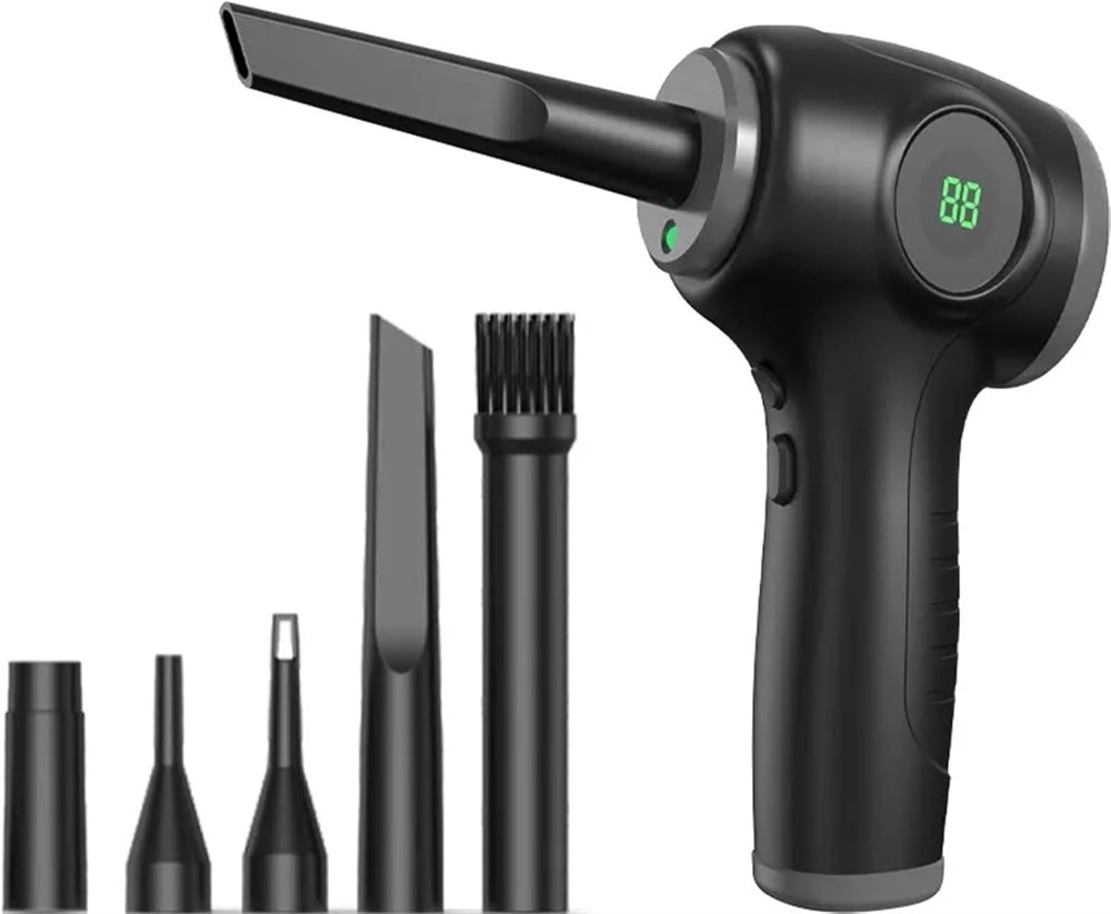 Upgraded maximum power 40,000 RPM motor provides super strong airflow to deep clean tiny dust Suitable for cleaning different devices, from computers, camera lenses, PS4/5, laptops, car air conditioners, air conditioners, sofas, printed circuit boards to electronic instruments, medical devices Steel vertical hidden fan blade design, you can't directly see and touch the high-speed rotating fan blade, greatly extend the working life of the dust collector blade, more efficient and safer Light weight and easy to carry. Considering your different needs, we thoughtfully equipped this air duster with 4 different nozzles Equipped with a fast charging port and an upgraded 6000mAh battery, this computerised duster can be quickly recharged in three hours for 2-4 hours of continuous operation. You can charge it via car charger, e power laptop. Better experience, replacement for air tank.