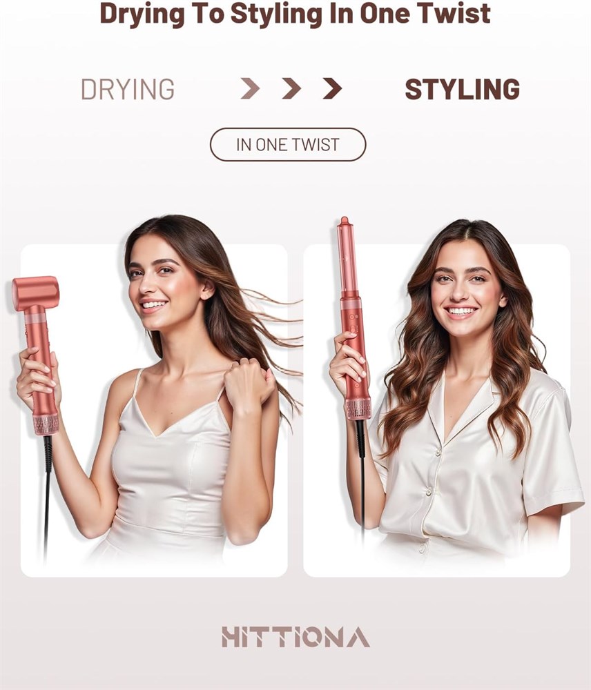 KINDLY REMINDER: If you are not clear how to install the air styler, the installation on the detail page will be a great help Achieve Versatile Styling In One: Get various salon-worthy looks at home with our 5-IN-1 Air Styler Kit! The auto wrap hair styler includes 5 interchangeable attachments (high-speed hair dryer, left & right auto wrap curling irons, oval hair brush, round brush) for drying, curling, volumizing, and straightening. This hair styler is ideal for all hair types and meets your various styling needs Quick Styling Air Styler: The air curler for hair with 110,000 RPM high-speed brushless motor, and powerful airflow up to 23m/s can accelerate drying, shortening your time by half that of traditional hair dryers. From blow drying to creating bouncy curls, the hair styler only takes a dozen minutes, saving your styling time every morning No Heat Damage Hair Styler: Fast drying your hair while maintaining low heat, rather than getting hotter as it runs, this air styler set with intelligent thermal control can automatically detect the air temperature, thus controlling it below 248 F, minimizing heat exposure & regulating temperatures, avoiding irreversible heat damage to your hair FRIZZ-FREE Hair Dryer Brush: The professional 5 in 1 air styler with 30 million negative ions 10X more than standard dryers! This upgrade boosts your hair shine greatly, frizz-free. The premium dual nylon-tufted brush head glides through knots without hair snagging or breakage, bringing a smooth and sleek finish. Whether you re blow-drying or curling, this 5 in 1 high-speed hot air styler delivers salon-quality smoothness with zero hassle Portable & Gift-Perfect Design: Take your styling routine anywhere with the included high-quality and exquisite storage bag. Our hair styler kit keeps all attachments organized no more lost brushes or tangled cords. Just go with it! And the unique fashion color makes the air styler set also perfect as a birthday or festival gift to your girlfriend, mother, or daughter.