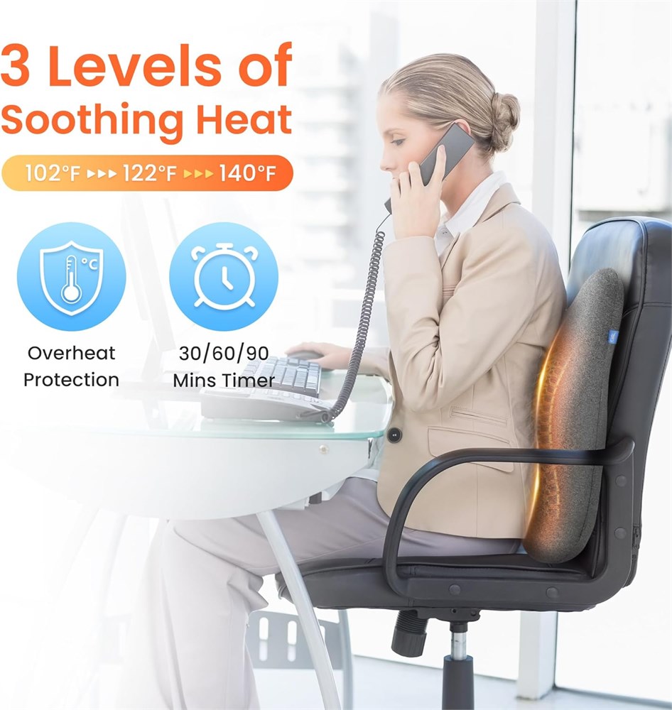 Ergonomic Design: CILI lumbar support pillow for office chair utilizes high-density memory foam as filling material, combined with ergonomic design to ensure its curve fits the lumbar spine, providing support for the back and correcting posture while relax muscle tension. The office chair cushion enlarged size (16.95.117.7) makes it suitable for daily office, leisure, long-distance driving, and more. Vibration Massage: Equipped with two vibrating motors, CILI seat cushions for office chair offers three levels of soothing vibration massage to relax tense and muscles in the back and lumabr. Additionally, the back support features three modes with different vibration frequencies to meet diverse needs. Note: CILI lumbar support pillow only provides vibration and does not include kneading or shiatsu functions. Heating Function: CILI massage pillow comes with heating functionality to enhance the massage experience. The back massage with heat offers three temperature options (102-122-140 F). Both heating and vibration functions can be used separately, making this back support pillow particularly effective during winter. Note: The heating is gentle and gradual, and reaching the highest temperature requires some time. Safety Features: CILI back rest cushion requires a power source but ensures safety without any worries. The lumbar pillow offers three timer options (30/60/90 mins) and automatically shuts off when the set time elapses. Additionally, it incorporates overheat protection technology for added safety assurance. Comfortable & Adjustable: CILI lumbar support pillow features breathable and skin-friendly fabric, with a removable and washable cover. The chair massager also comes with adjustable straps, allowing it to adapt to different chairs. Hence, it serves as an ideal birthdays, Christmas, Thanksgiving, Mother's Day, and Father's Day gift for dad mom men women. fathers day gifts from daughter son wife.