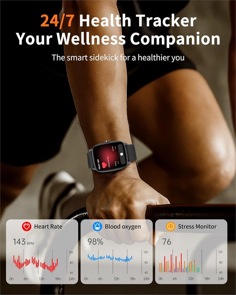 Bluetooth 5.3 Calling & Message Notifications: The watches for men women Stay effortlessly connected with the latest Bluetooth 5.3 technology, which ensures a quick and stable link between your smartwatch and phone. With a built-in microphone and Hi-Fi speaker, you can make and receive crystal-clear calls directly from your watch. Get real-time alerts for calls and messages from your favorite apps like Facebook, WhatsApp, Instagram, TikTok, and Twitter, all displayed right on your wrist with vibration notifications to keep you informed wherever you are. 24/7 Health Monitoring & AI Voice Assistant: This smart watch provides comprehensive 24/7 health monitoring, tracking your key metrics such as sleep patterns, steps, walking distance, and calories burned, offering accurate results with a margin of error less than 2% when compared to professional devices. Synchronize your watch with the "VeryFit" app to access detailed health reports. With AI Voice, you can use voice commands to check the weather, set alarms, reminders, initiate workouts, and view your fitness data, all without touching your watch. 1.85-inch Touch Screen & Personalized Watch Face: Smart watch for women men is designed with a cutting-edge 1.85-inch high-definition touch display that offers superior color clarity and a responsive touch experience. You can explore its functions effortlessly, and with more than 120 customizable watch faces available in the "VeryFit" app, it s easy to personalize your device. Additionally, you can even upload your own photos to create a custom watch face, making the watch uniquely yours. 100+ Sports Modes & IP68 & Long Battery Life: This Smartwatch supports more than 100 different sports modes, including popular activities like running, cycling, swimming, and fitness training, making it suitable for any fitness enthusiast. Its IP68 waterproof rating ensures reliable protection against water during everyday activities, such as washing hands or exercising in the rain. Note that it should not be submerged in hot water (like saunas) or left in water for extended periods. With a high-capacity battery, the watch can last 5-7 days on a single charge, with an impressive standby time of up to 20 days, and recharges fully in just 2 hours.