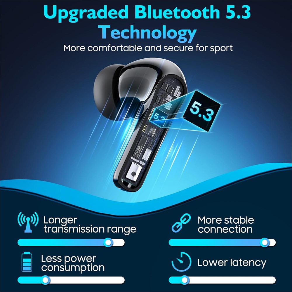 ENC Noise Reduction & Immersive Stereo Sound: Wireless earbuds have a built-in microphone for easy calls. ENC Noise Cancellation allows others to hear you clearly while talking. Ear buds wireless bluetooth noise cancelling feature 13mm speakers and a triple-layer composite diaphragm that delivers powerful bass, punchy highs, and clear mids. Bluetooth 5.3 One Step Pairing: Thanks to Eumspo earbuds advanced Bluetooth 5.3 capabilities, wireless ear buds ensure a strong, continuous connection up to 30 feet away from the paired device. It greatly improves the transmission speed, providing you with a low-latency listening experience. Touch Control & Wide Compatibility Sensitive touch control keys built into the ear buds allow you to easily manage your music or phone calls. Change songs, adjust the volume, and make calls, all operations are at your fingertips without taking out your phone. Bluetooth ear buds reduces pressure on the ears to a great extent compared to physical buttons. Compatible with most Bluetooth-enabled devices, including iPhone or Android smartphones, computers, laptops, and more. LED Battery Display & 40 Hours of Playback: Each ear buds provides up to 8 hours of listening time on a single charge, rotating through the charging case for a total of 40 hours of music enjoyment. The wireless earbuds feature a dual-LED digital display that provides real-time battery status. Easily monitor remaining power and plan your usage accordingly. Bluetooth Earbuds support Type-C wired charging. Ergonomic Design and IPX7 Sweatproof: S2 earbuds come with 3 different sizes of soft earbuds that fit 99% of the contours of the ear canal, each earbuds weighs only 0.4 ounces for a comfortable fit that won't fall out, and have a waterproof mesh and nano-coating on the inside that prevents perspiration from soaking in and damaging the earbuds due to sweat. You can use them for running, working, etc. They also fit easily in your pocket or backpack. The shell material is smooth and easy to clean.