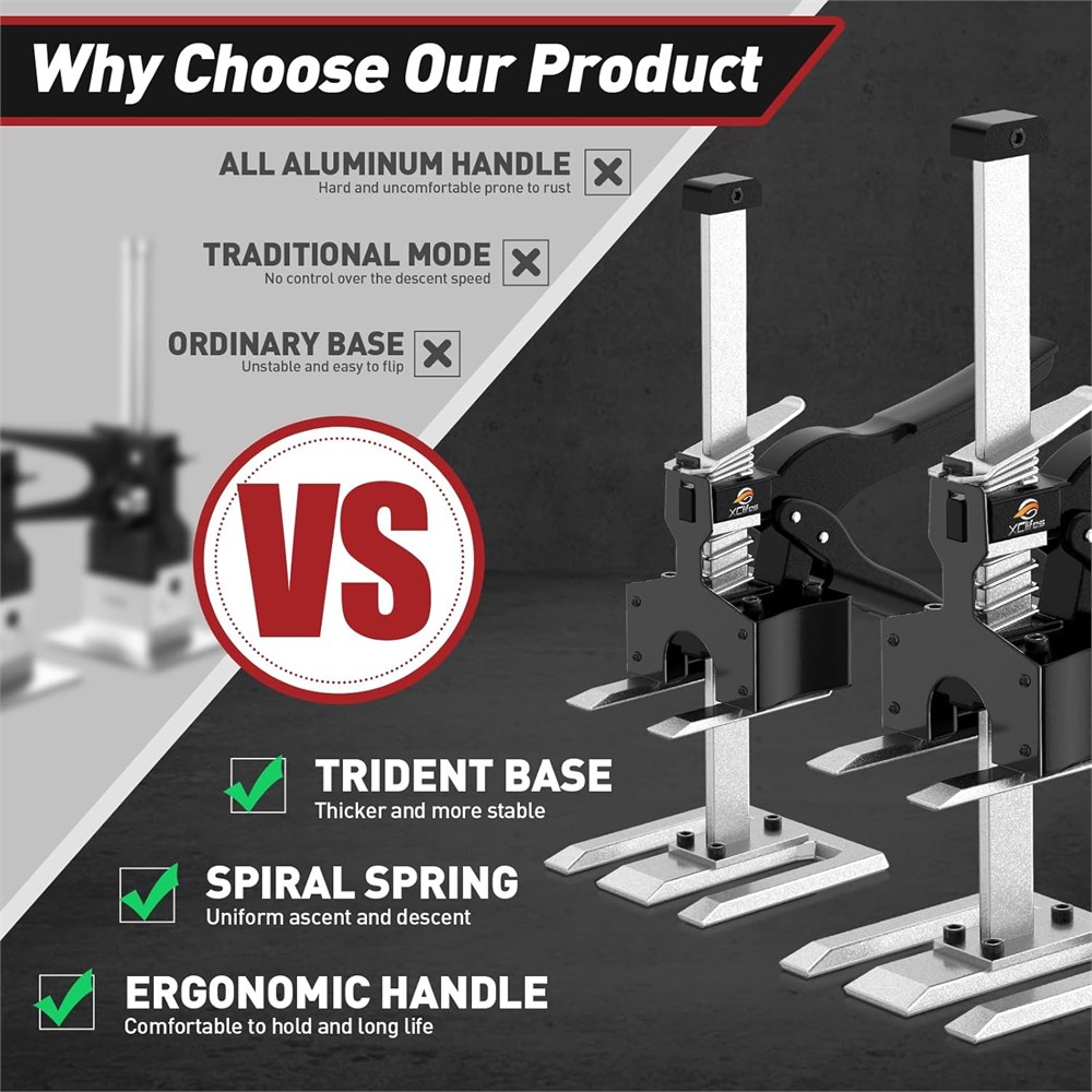 Cric multifonctionnel am lior : dispositif de nivellement de carrelage mural, la hauteur peut tre facilement ajust e en appuyant sur la poign e. Tous les bras de sol en acier de qualit sup rieure sont utilis s pour soulever, presser, fixer et contr ler avec pr cision. R glage de la hauteur libre, positionnement pr cis, levage rapide Base solide en acier, supporte la charge et durable : outil de levage innovant, plaque inf rieure en acier massif double clip pais, centre de gravit stable, deux sont utilis s en m me temps, supportant 200 livres, et 8,1 cm de capacit de levage gr ce au ressort de r glage de la poign e. Ressort haute r sistance s lectionn , plus longue dur e de vie Poign e confortable, contr le de pr cision : design de bras conomique, poign e confortable et conome en main-d' uvre, design portable, poign e de pr hension peut rapidement remonter. Appuyez doucement sur la plaque pour abaisser rapidement. Il peut aider le personnel d'installation terminer le travail facilement, soulager la fatigue et travailler efficacement Large utilisation, facile transporter : le bras multifonction conomiseur de force peut tre utilis dans diff rentes sc nes. L'installation de portes et fen tres et l'installation d'armoires, de sols, de porches, de terrasses et de cadres sont de petite taille et l g res. Le l ve-carreaux est facile transporter et utiliser. C'est la meilleure fa on de l'offrir Service apr s-vente s r et achat sans soucis Si vous rencontrez d'autres probl mes, n'h sitez pas nous contacter pour les r soudre. Nous vous r pondrons dans les 24 heures, et nous ferons de notre mieux pour vous satisfaire 100 %