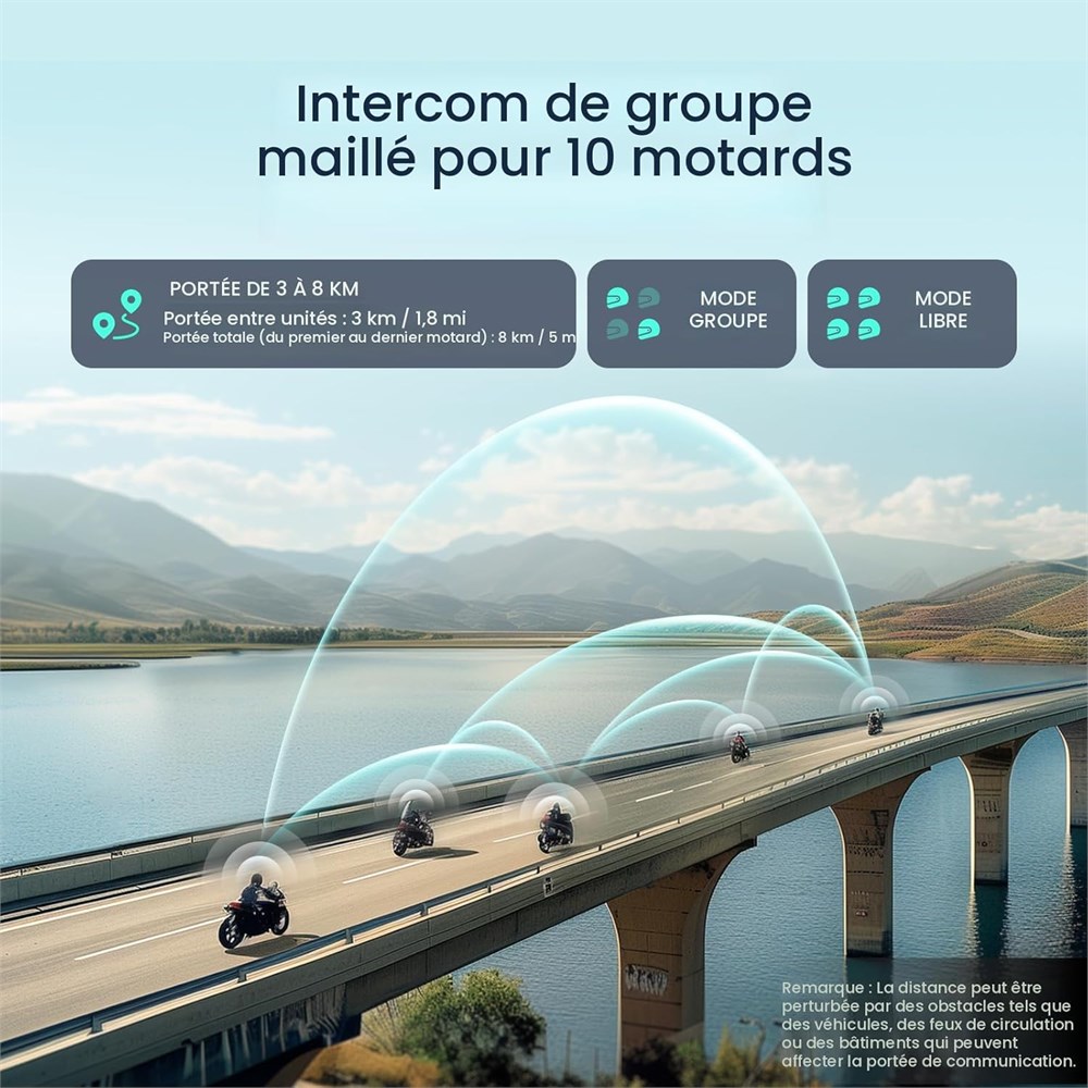 Multit che audio : profitez de la musique, des directions GPS et des conversations intercom simultan ment pour une exp rience de conduite plus s re et plus pratique. > Bluetooth 5.3 & Interphone 10-Rider 3 modes d'interphone (libre, groupe, CloudTalk) Mises jour FOTA pour une am lioration continue<: Avec la prise en charge FOTA int gr e, votre casque ne cesse de s'am liorer. Notre quipe fournit r guli rement des mises jour sans fil pour am liorer les performances, la stabilit et ajouter de nouvelles fonctionnalit s. Support magn tique, charge rapide et tanch it IP67 : installation facile avec une base magn tique s curis e, charge rapide aliment e par une batterie de 1250 mAh pour une dur e de conduite prolong e, et protection tanche IP67 durable pour une utilisation par tous les temps.