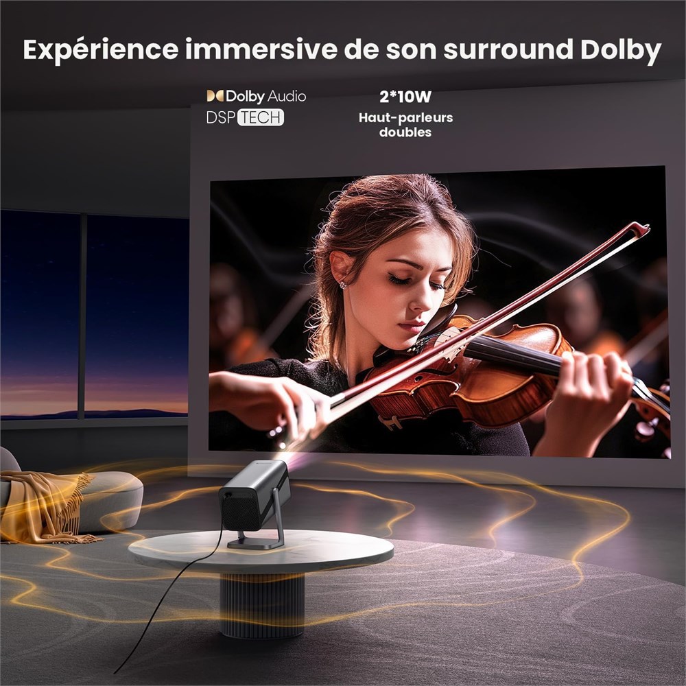 Licence officielle Netflix/support int gr 360 Le projecteur iWIMIUS S29, le dernier mod le de projecteur portable 2025, dispose d'un syst me sous licence officielle Netflix et d'un support rotatif 360 , liminant les risques d' cran noir li s au piratage et de violations de s curit des donn es. Profitez d'un acc s en une touche Netflix, Prime Video, YouTube et plus de 1 200 000 films. Le support rotatif 360 assure une visualisation parfaite sous n'importe quel angle. Haut-parleur int gr de 20 W/prend en charge le son Dolby Surround 2 x 10 W double canal 360 immersif Dolby son pour cr er une exp rience sonore de niveau cin ma. La haute fr quence est claire et non dure, la voix humaine fr quence moyenne est claire et d licate, et la basse fr quence est profonde et puissante. Que ce soit le rugissement d'explosion d'un film de science-fiction ou le son subtil d'un concert en direct, le projecteur portable peut clairement localiser le son. 1080p natif prend en charge la luminosit 4K/600ANSI Le projecteur S29 4K a une qualit d'image native 1080p et un d codage ultra clair 4K. Le syst me intelligent d'optimisation d'image IA peut correspondre automatiquement au sch ma de gamme de couleurs et simuler jusqu' 98 % de la gamme de couleurs au niveau cin ma NTSC. Chaque cadre est soigneusement reconstruit par des millions de particules de couleur, et la luminosit 600ANSI du projecteur 4K pr sente avec pr cision des d tails clairs. Qu'il s'agisse de cheveux flottants ou de la trajectoire des flammes saut es, tout est r aliste. Mise au point lectrique/correction automatique Keystone 4D4P Le projecteur S29 est quip d'une mise au point lectrique avanc e et d'une correction intelligente de la distorsion trap zo dale 4D/4P. Il suffit d'appuyer l g rement sur la t l commande du projecteur d'ext rieur pour terminer la mise au point pr cise en un instant, et de dire adieu l'anxi t floue des boutons manuels traditionnels. Le gyroscope 6 axes d tecte intelligemment l'angle d'inclinaison du fuselage et corrige automatiquement le trap ze l'image carr e en 1 seconde. La fonction zoom de 50 % du mini projecteur et le r glage du rapport d'aspect permettent au projecteur intelligent de s'adapter n'importe quelle sc ne. WiFi 6 sans retard / Bluetooth bidirectionnel 5.2 La lecture vid o fluide WiFi 6 avanc e du projecteur intelligent et l'exp rience de jeu sans retard facilitent la gestion de la mise en miroir de t l phone portable et des connexions d'ordinateur portable. Bluetooth bidirectionnel 5.2 prend en charge l'entr e et la sortie audio. Mode de sortie : connectez le projecteur Bluetooth une barre de son ind pendante pour profiter d'un son surround 360 , avec une augmentation de 200 % du volume. Mode d'entr e : teignez la projection et connectez le t l phone pour couter de la musique, et il deviendra instantan ment un haut-parleur Bluetooth. Vous n'avez pas besoin de transporter un haut-parleur en camping. Il peut tre utilis la fois comme un t l viseur et un haut-parleur. Service apr s-vente fiable iWIMIUS fournit un service client apr s-vente 24 heures sur 24, une garantie satisfait ou rembours de 2 ans, une garantie de r paration de 3 ans et un support technique vie pour r soudre tous vos soucis. Veuillez vous r f rer au guide de d marrage rapide inclus pour des vid os d'instructions et des manuels d'utilisation d taill s. Si vous avez besoin d'aide suppl mentaire, n'h sitez pas nous contacter, nous sommes toujours votre service Large compatibilit pour r pondre diff rents besoins de projection : le projecteur portable S29 dispose d'un trou de vis de 6,35 mm sur le fond, qui prend en charge le montage au plafond/mur. Son rapport de projection de 1,1:1 permet d' conomiser 0,5 m de distance pour un cran de 100 pouces par rapport aux projecteurs traditionnels, ce qui le rend id al pour les petits espaces. Il est quip de 1 port HDMI, 1 port USB et une prise casque 3,5 mm, et est compatible avec cl TV, Roku, ordinateurs portables, iPhones, appareils Android, iPad, cl s USB, Switch/PS5 et autres appareils.