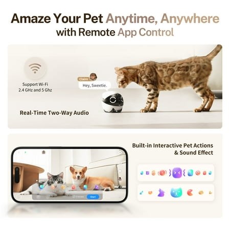 Movable Robot & 2K Resolution: Capture stunning, real-time moments with unmatched clarity. Adorable Eye Light & Multi-Device Sharing: Delightful design and easy sharing with family and friends. One-Touch Call & Two-Way Audio: Instantly connect and communicate from your phone. IR Night Vision & Video Recording: Crystal-clear footage, even in low light, with included 32 GB memory card. Battery-Powered & Magnetic USB-C Charging: 5000 mAh battery for extended use and convenient charging. What s in the Box: ROLA Mini Pet Camera Robot x1, USB-C cable x1, and user manual x1.