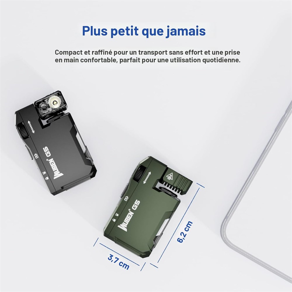 Lampe torche EDC rechargeable : la WUBEN G5 est une petite lampe de poche puissante adapt e pour un usage quotidien. Il dispose de plusieurs modes d' clairage, avec un maximum de 400 lumens et une distance d'irradiation maximale de 82 m. La taille est de 1,47 po x 0,59 po x 2,44 po et le poids total est de seulement 52,3 g. Il peut tre facilement mis dans les poches, sacs dos ou porte-cl s pour un transport facile. Il peut facilement g rer les situations, que ce soit pour le camping en pleine nature, les randonn es aventureuses ou les urgences familiales. Mini lampe torche puissante double source de lumi re : elle adopte un syst me LED double perle et dispose de plusieurs modes d' clairage. La lumi re principale est une lumi re blanche froide avec 3 modes r glables (faible, moyen, lev ). La vitesse peut tre facilement commut e en faisant glisser l'interrupteur poulie. La lampe auxiliaire est une lampe RGB avec 7 couleurs (rouge, orange, jaune, vert, cyan, bleu, violet). Les couleurs peuvent tre chang es cycliquement en faisant glisser l'interrupteur poulie. Mode balise : en mode RVB, double-cliquez sur le bouton pour activer la fonction clignotante de la couleur actuelle. Mode de lumi re d'avertissement : dans l' tat teint, double-cliquez sur le bouton pour entrer dans la fonction clignotante d'avertissement RVB. T TE DE LAMPE ROTATIVE 180 DEGR S ET CLIP : La conception innovante de la t te de lampe rotative et du clip permet un ajustement flexible de la direction de l' clairage, r pondant divers besoins de sc narios et permettant un clairage multi-angles. Lors d'aventures en plein air, de patrouilles nocturnes, etc., lorsqu'il est n cessaire de voir sous diff rents angles, il suffit de faire pivoter la t te de la lampe ou de la fixer pour projeter pr cis ment la lumi re l o c'est n cessaire, comme lors de l'exploration de grottes, de l'entretien des machines, de la lecture, du cyclisme et de l'installation de la tente lors du camping en plein air. CHARGEMENT RAPIDE DE TYPE C ET TANCH IT SUP RIEURE IP68 : Cette lampe de poche rechargeable a un design de bouton simple et clair. Le glisser vers le haut charge la lampe de poche, permettant une utilisation facile m me dans l'obscurit . Il ne faut que 1,5 heures pour une charge compl te, et la lampe de poche peut durer jusqu' 65 heures la luminosit la plus faible. Avec un indice d' tanch it IP68, il peut supporter les environnements les plus difficiles. LAMPE TORCH MAGN TIQUE : Le design mains libres permet de la fixer diverses surfaces m talliques telles que les capots de voiture, les ch ssis de v hicules, les r frig rateurs et les portes en fer. Dans les sc narios o les deux mains sont n cessaires, comme l'entretien du v hicule, l'inspection de l' quipement et les travaux m nagers, elle peut fixer la lampe de poche dans une position appropri e pour fournir un clairage, vous permettant de vous concentrer sur votre travail et d'am liorer l'efficacit . Design minimaliste avec fonctions puissantes : gradation continue : en mode lumi re blanche, tournez le bouton dans le sens des aiguilles d'une montre pour r gler la luminosit de la lampe de poche de faible lev e. Ultra-luminosit rapide : en mode lumi re blanche, double-cliquez sur le bouton pour entrer dans l' tat ultra lumineux, et double-cliquez nouveau pour revenir l' tat d'origine. Verrouillage de la lampe de poche : lorsque le bouton-poussoir est enfonc en mode verrouillage, toute op ration n aura aucun effet.