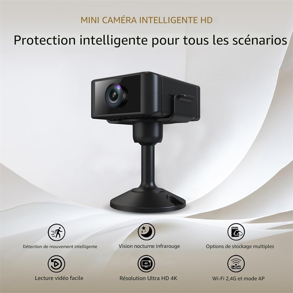 Clart ultra 4K avec vision nocturne. Capturez une diffusion en direct en r solution 4K nette pour une surveillance pr cise des animaux, des b b s ou des activit s domestiques. La technologie infrarouge avanc e offre une visibilit claire 24h/24, 7j/7, m me dans des conditions de faible luminosit , tandis que l'objectif grand angle de 160 limine les angles morts pour une couverture compl te de l'espace. Deux options de stockage : Local et Cloud. Enregistrement flexible via carte SD (prend en charge 256 Go) pour des s quences continues 24h/24, 7j/7 ou des moments critiques s curis s avec un stockage cloud crypt . Comprend un essai gratuit de 7 jours sur le cloud (enti rement conforme aux r glementations audio Amazon). Installation en 60 secondes, z ro comp tence technique. La configuration Wi-Fi en 3 tapes permet une activation instantan e en 1 minute. Des instructions claires int gr es l'application rendent cette cam ra de s curit accessible tous les utilisateurs, des personnes g es aux nouveaux propri taires. Alertes de mouvement IA et notifications instantan es. La technologie de d tection intelligente analyse les mouvements et d clenche des alertes en temps r el sur votre t l phone. Restez inform de l' tat de s curit de la maison, que ce soit au travail, en vacances ou dans une autre pi ce. Batterie prolong e de 6 heures + alimentation continue. Une batterie robuste de 1000 mAh offre 4 6 heures d enregistrement sans fil, tandis qu un chargement continu via une batterie externe ou une prise vous permet de surveiller sans interruption. Ne manquez jamais un moment !