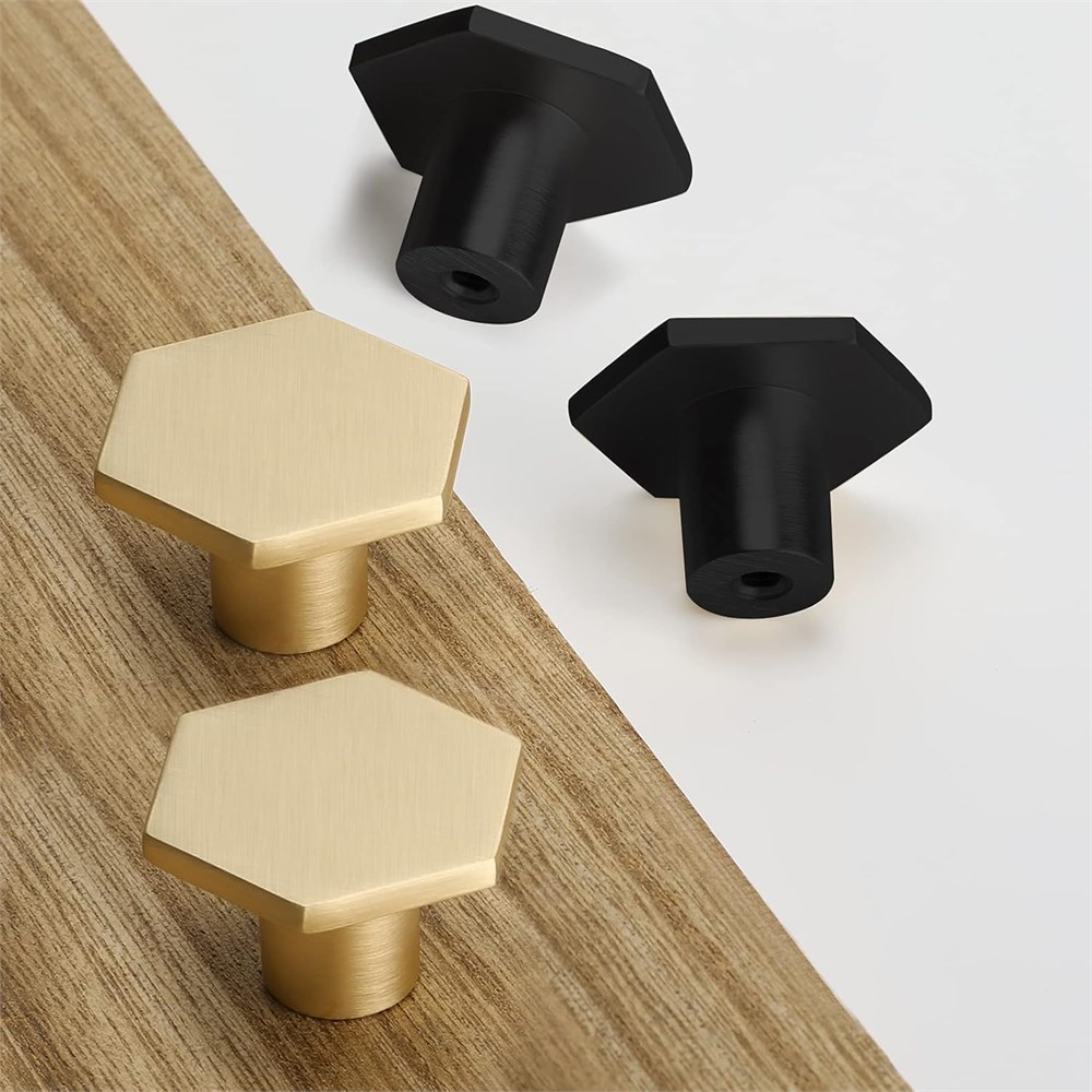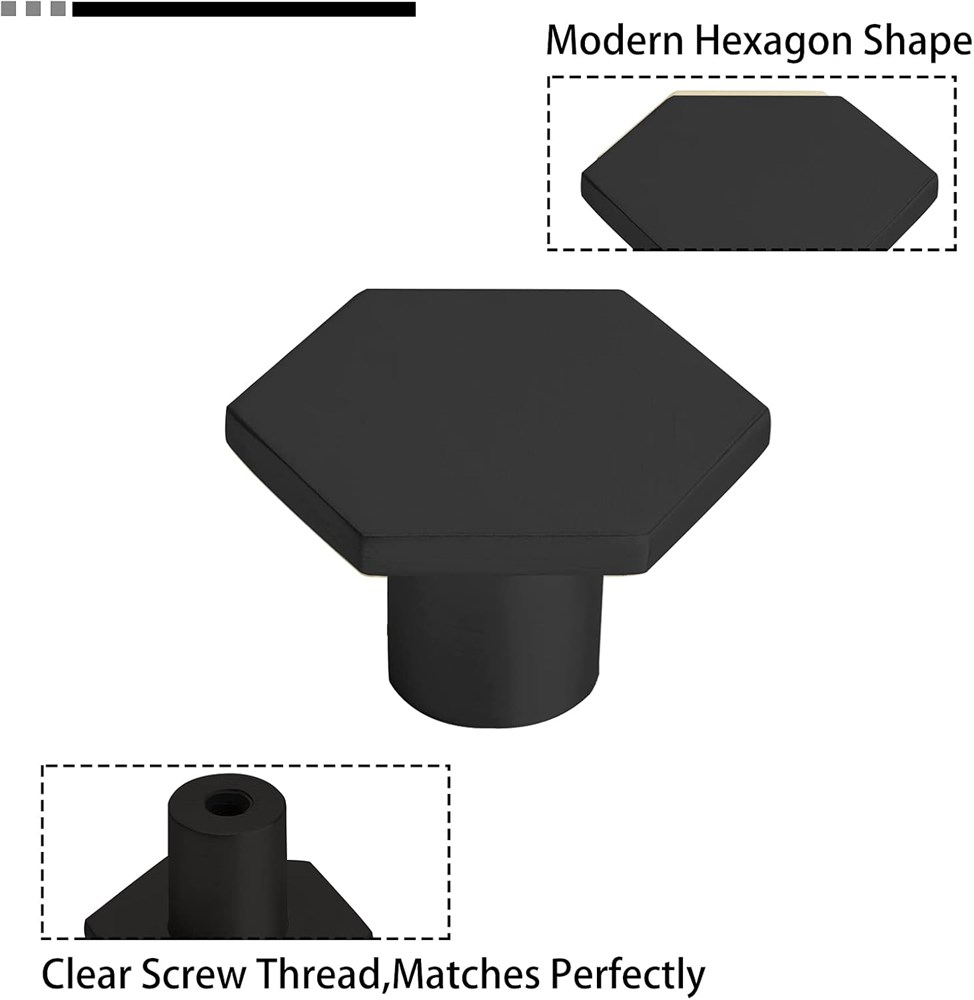 Premium Material Made of high-quality Zinc Alloy material, durable and anti-rust. Matte black surface showing kitchen cabinet knobs a modern look and no fingerprints left after touching. Unique Design These knobs for dresser drawers adopt a hexagonal structure design sharing less touch space, fit every finger perfectly as you touch. No shape edges to ensure your daily safe use. You Will Get 6 matte black cabinet knobs and screws that match them. There are two sizes of screws, 1.1 inch & 1.85 inch. To prevent scratches, every knob is individually wrapped. Easy to Install Just 2 steps - Mark the position and drill a hole first. Then pass through the screw from the back, tighten the black cabinet knobs toward the other side firmly.