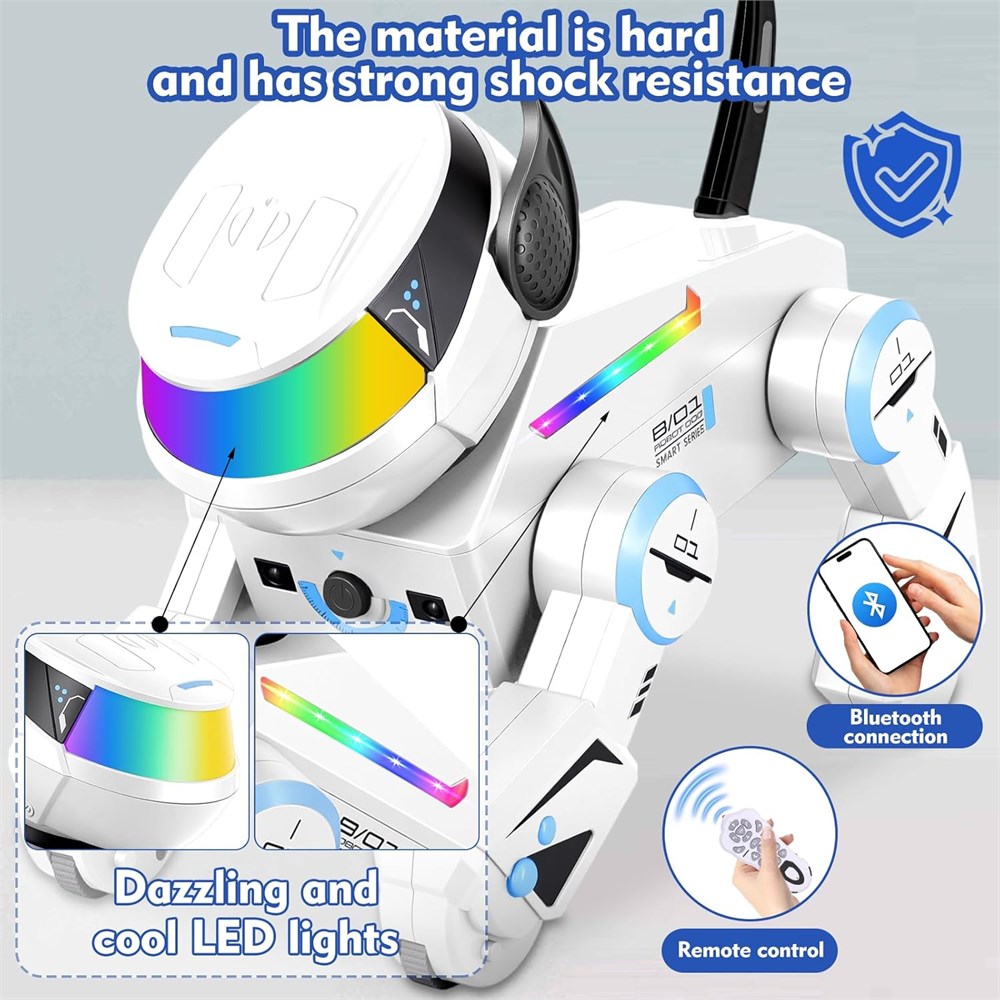 SMART INTERACTIVE ROBOT DOG WITH PROGRAMMABLE ACTIONS Meet your new realistic robot dog! Blorkbuy s advanced interactive robot dog responds to touch, voice, and remote control. Kids and adults can program custom action sequences like dance, flip, and sit making every play session unique and engaging MUSIC & AI-ENHANCED DANCE MODES Turn your AI robot dog into the life of the party! watch as your robot puppy dog realistic moves to the beat with vibrant LED light effects. Perfect for dynamic dance performances and interactive fun REMOTE CONTROL & TOUCH SENSITIVE PLAY Easily direct your robot dog for kids with the included remote. Walk, dance, or trigger tricks with a simple touch on its head or back. This interactive robot dog delivers real-time reactions, making it feel just like a real pet LONG-LASTING RECHARGEABLE BATTERY Enjoy up to 40 minutes of continuous fun with your robot dog toy! The high-capacity battery supports extended indoor and outdoor play ideal for both kids and adults who love tech-driven adventures PERFECT GIFT FOR ALL AGES Whether you're shopping for a child or a tech-savvy adult, this robot dog for adults and kids alike makes a memorable gift. Inspire imagination and STEM interest with Blorkbuy s smart robot dog the ultimate interactive companion for birthdays and holidays.