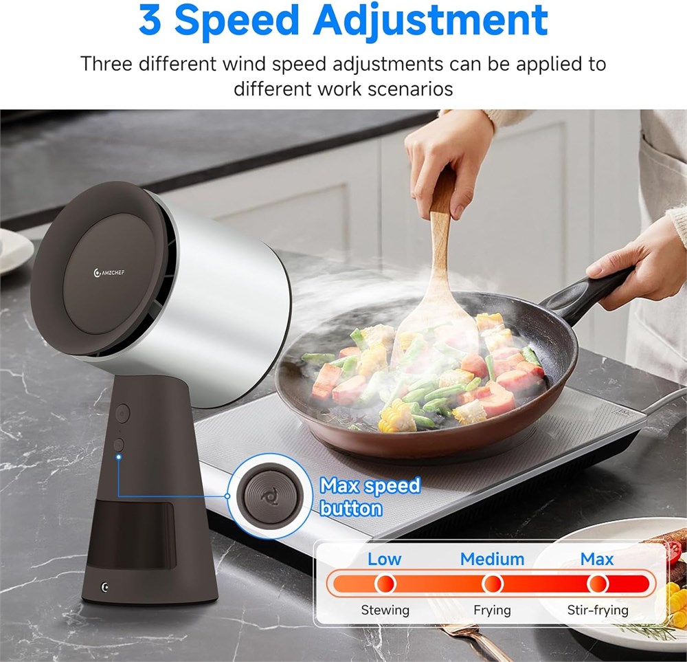 Filter material: polymer filter+aluminum alloy condensation Net+Grease Filter. It can absorb the vast majority of oil fumes and provide you with a fresh dining environment Space Saving: AZMCHEF Portable range hood with mini design, small and light, convenient storage,suitable for apartments, RVs, outdoor camping,indoor BBQ,hot pot Speed mode: AMZCHEF portable range hood can be adjusted using three levels of wind speed, which can be accurately applied to different working modes, energy-saving and environmentally friendly Smoke screen: portable range hood using double-layer stainless steel etching screen, with a longer service life Design available everywhere: AMZCHEF Mini range hood with no installation needed, One click start is a good helper for you to ask for oil fumes Low Noise Noise<63dB Extremely low work noise provides you with a quiet and comfortable dining environment.