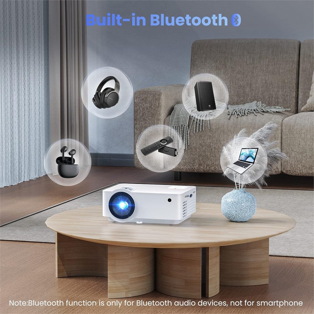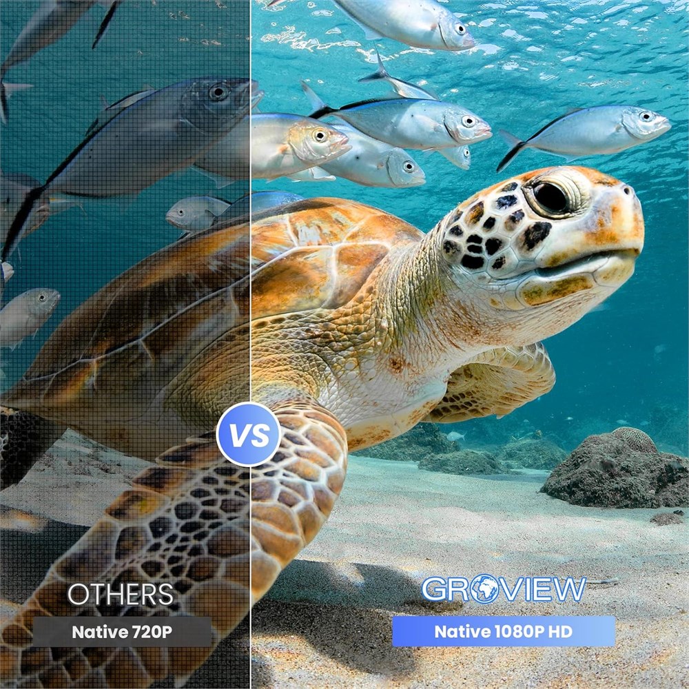 The mini projector offers the cinematic view with 1920*1080p native resolution, 9500 lux brightness and 10000:1 impressive contrast ratio in the comfort of your home. The portable projector uses LCD display technology and LED light to produce clear, detailed images without compression. Additionally, the Bluetooth projector comes with 100 portable projector screen . You can easily connect the outdoor projector to your Bluetooth speakers without the hassle of cords and wires to immerse yourself in crystal-clear sound. The Bluetooth projector for iphone also features an HiFi SRS sound system " Our portable projector offers giant display size from 40 to 200 inches at 5 to 18 feet, adapting to any room size or setup. The convenient 50% zoom function(Only when using USB) allows you to adjust the image size without moving the iphone projector, giving you more control over the viewing experience and accommodating various viewing distances The HDMI, VGA, USB and SD ports of the outdoor movie projector makes it compatible with a variety of electronic devices, including smartphones, laptops, tablets, USB flash drives, game consoles, media players, and more. The projector with bluetooth is perfect for home entertainment, backyard, gaming, yoga, or party We stand behind our product, and our after-sale service is a testament to that. Reach out to us with any concerns, and enjoy 2 years of after-sale service for peace of mind. With Groview projector, you'll always be taken care of.