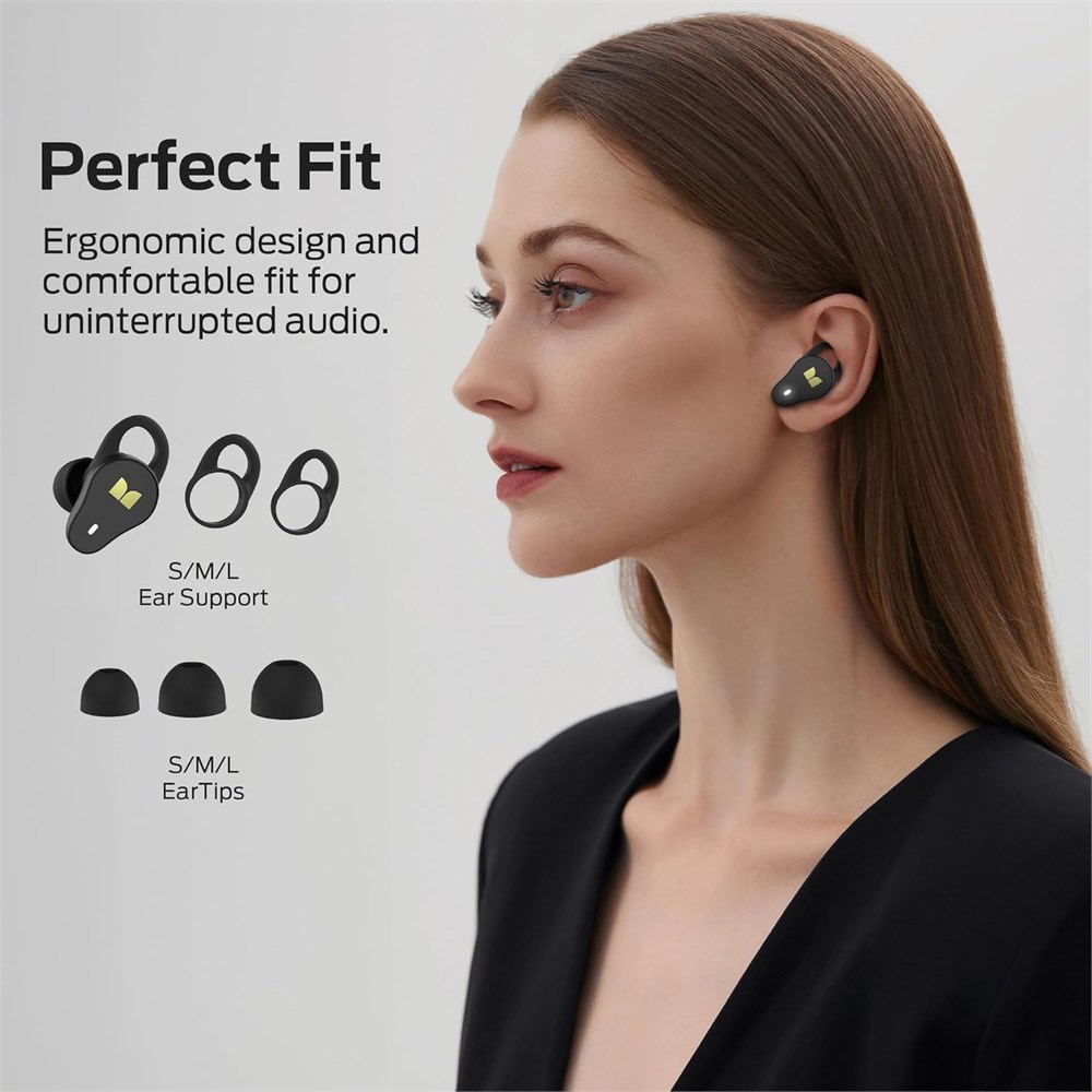 Pure Monster Sound Monster N-Lite 210 Wireless Bluetooth earbuds with a 13mm oversized driver craft to produce a rich bass that resonates with every beat, ensuring minimal distortion and providing truly immersive sound. With premium diaphragms, Monster N-Lite 210 offers enhanced resolution and richer details, making your music captivating. Ergonomic Fit Design Crafted with an ergonomic design, Monster N-Lite 210 Wireless Earbuds naturally nestle into your ear and minimize external noise while providing a comfortable fit that stays in place even during outdoor activities. Comes with 3 different sizes of ear tips and ear supports, allowing you to find the perfect fit that contours to the unique shape of your ear. Advanced Bluetooth 5.4 Bluetooth 5.4 technology has superior sound quality and strong signal, so that there is no disconnection in listening to music or making phone calls within 12 meters, ensuring a seamless and stable connection with your devices and providing a low latency listening experience. Once connected, the headphones allow auto re-connection next time that's as easy as putting them on. 32 Hours Battery Life Unlock the freedom of extended listening with Monster N-Lite 210 Bluetooth earbuds, designed to deliver up to an impressive 32 hours of non-stop listening enjoyment. Whether you tackle a full day's work or want to lose in your favorite tunes, the earphones can ensure you're never disconnected from the sounds you love, which gives you an excellent experience of long endurance. Easily Touch Control The Bluetooth Wireless Earbuds are equipped with sensitive touch controls that allow you to effortlessly manage your music and calls. With a simple tap or touch, you can play, pause, skip tracks, and adjust the volume. IPX5 Waterproof Take your listening experience to with the IPX5-rated waterproof headphones. Waterproof and sweatproof technology can effectively prevent the damage of the splash by sweat and raindrops, whether you're sweating it out at the gym, getting caught in a sudden downpour, just enjoying your favorite tunes.