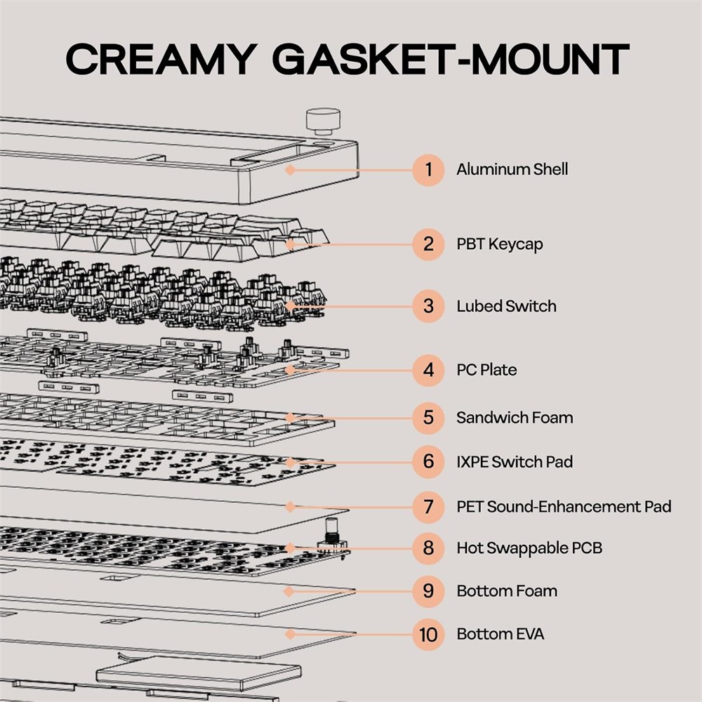 Mechanical Gaming Keyboard: Elevate your gaming and typing experience with the EPOMAKER P65 QMK/VIA Wireless Aluminum Gaming Keyboard. Designed for both aesthetics and performance, this compact 65% layout keyboard features a silver glossy knob for quick multimedia access, making it perfect for gamers and minimalists alike. Its durable CNC aluminum build ensures longevity while the customizable QMK/VIA programmability allows you to tailor the layout and macros to fit your unique workflow. With multiple connectivity options and vibrant RGB backlighting, the EPOMAKER P65 is not just a keyboard; it s a powerful tool that enhances productivity and provides an immersive gaming experience Multiple Connectivity Options: Experience versatile connectivity with the P65, which supports BT 5.0, 2.4GHz wireless, and Type-C wired connections. Enjoy the convenience and flexibility of cable-free operation through BT or a 2.4GHz wireless dongle. Includes a detachable USB-A to C cable for ultra-fast low latency. Equipped with a built-in 4000mAh large-capacity rechargeable battery, it offers long-lasting wireless performance and compatibility across various devices for maximum convenience QMK/VIA Programmable Keyboard: Fully key programmable with QMK/VIA support, the P65 gasket keyboard allows users to customize key layouts and macros, optimizing workflow for coding, gaming, or project work. Enhancing this convenience, the P65 features NKRO for anti-ghosting and on-board memory that stores layouts without requiring background software. Ideal for productivity enthusiasts and gamers alike, the P65 keyboard offers user-friendly customization through VIA software, enabling real-time layout modifications without the need to download additional programs Durable Aluminum Build Quality: Constructed from durable aluminum with an anodized finish, this keyboard is designed to endure daily use while resisting wear and corrosion, ensuring long-lasting performance in any environment. It offers superior resistance to bending, flexing, and scratches compared to plastic. Featuring a hot-swappable PCB with precisely tuned plate-mounted stabilizers and support for screw-in stabilizers, it allows for easy switch replacement without soldering. This enables you to choose your preferred switches for a customized typing experience, whether you prefer tactile, linear, or clicky feedback Enhanced Typing Sound&Vibrant RGB Backlighting: Experience quieter keystrokes with advanced sound-dampening materials, including sandwich foam, IXPE switch pad, PET sound pad, sound-absorbing foam, and EVA case foam. This thoughtful design significantly reduces noise while enhancing the overall sound profile of the keyboard. Additionally, the south-facing RGB backlighting creates a visually stunning setup in both low light and bright conditions. The per-key RGB backlighting improves visibility in dim environments and allows for customization.