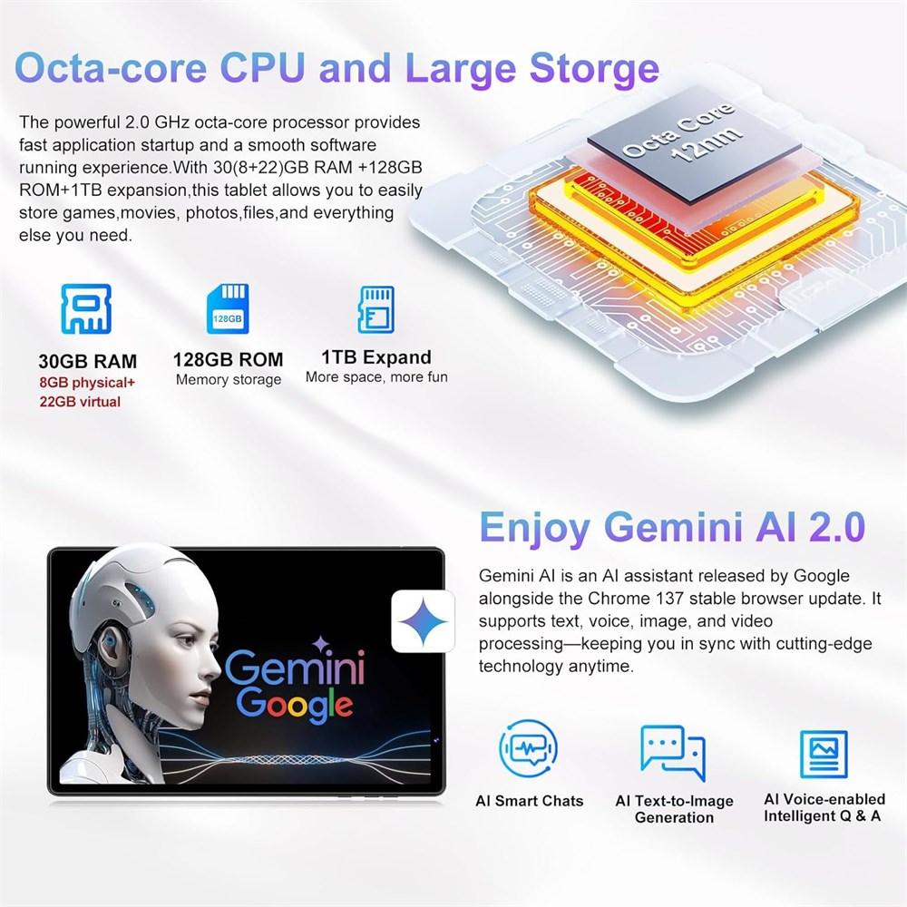 Metal Blue 2025 Tablet 10in Android, 30GB RAM, 128GB ROM