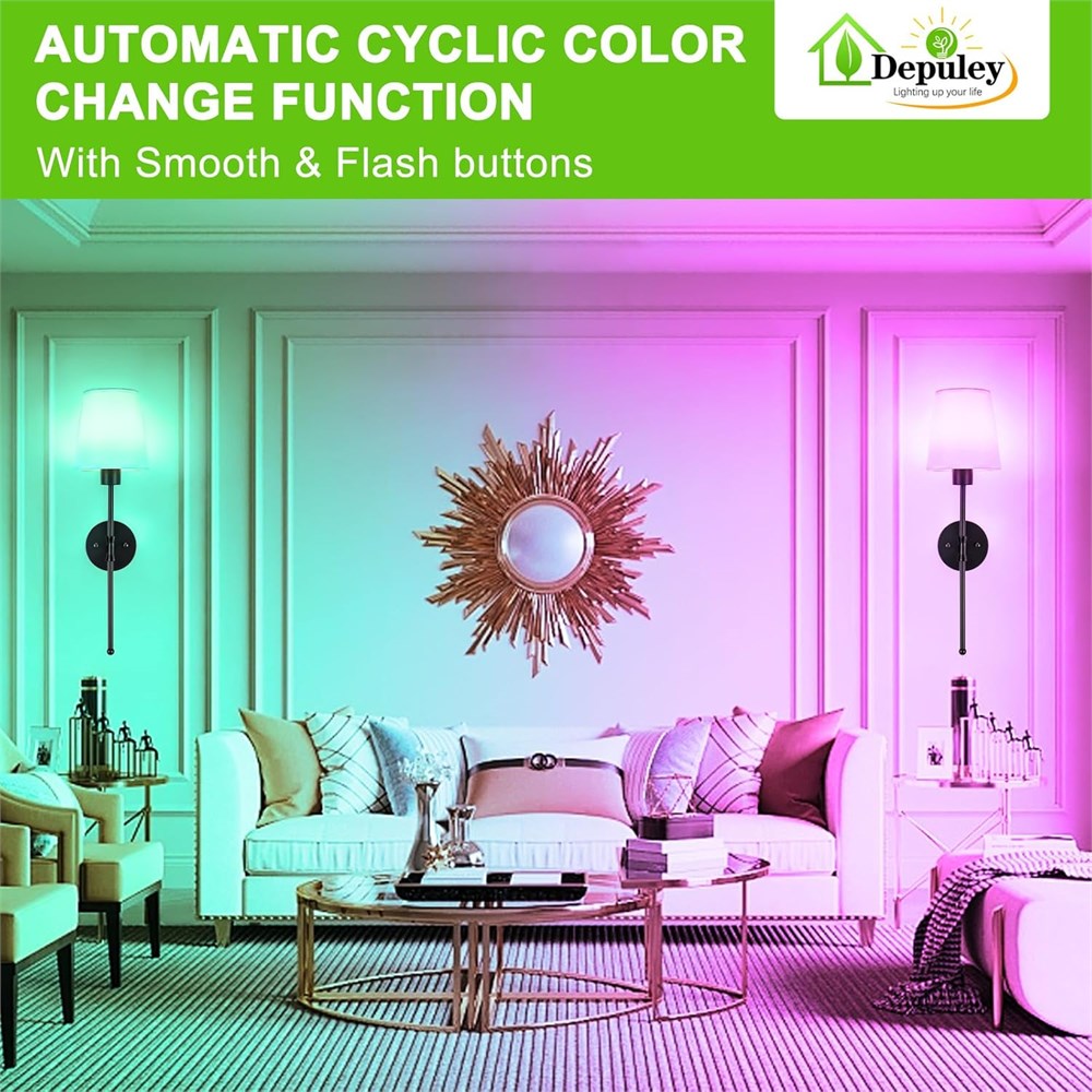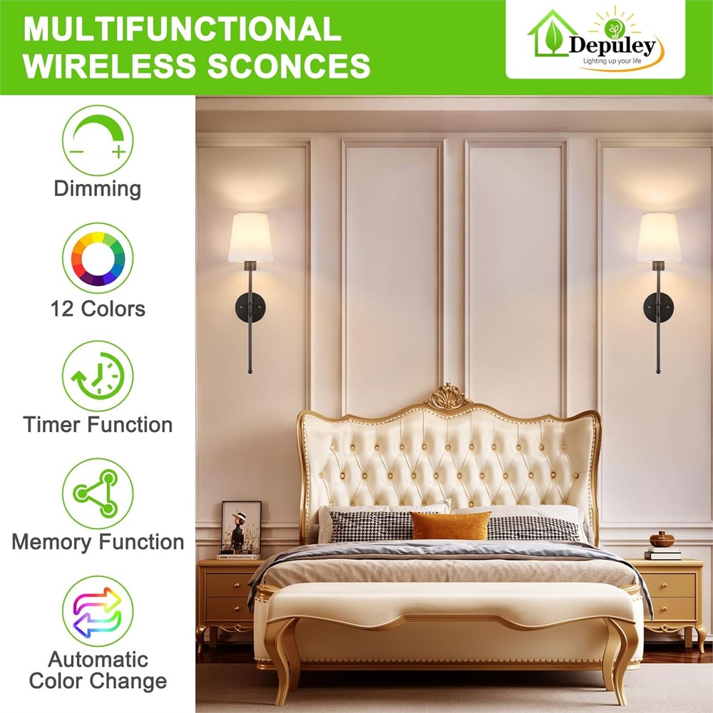 WIRELESS & EASY TO INSTALL - Set of two Depuley battery operated wall sconces with two E26 USB charging LED bulbs and detachable magnetic base, say goodbye to output and wiring limitations, it only takes 20 minutes to install. Our wall decor sconces set of 2 will elevate your room with a sleek, modern design.
