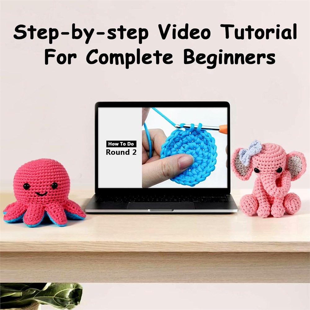 AMAZING CROCHET KIT COMPLETE BEGINNERS-Ktmeor crochet starter kit is great intro to crochet! The perfect crochet kit for complete beginners; Our instructions including step-by-step detailed partten manual and step-by-step video tutorial, both are easy to follow; EVERYTHING YOU NEED-Our Ktmeor crochet kit for beginners with all you need to start crocheting: enough yarn,crochet hook,a needle,ample stuffing,safety eyes,marker buckles,easy-to-follow video tutorials,step-by-step detailed manual and also a beginner's basic crochet manual. EASY-TO-FOLLOW VIDEO TUTORIALS WITH DETAILED MANUAL-The instructions of our crochet kit for beginners takes a combination of a step-by-step detailed product paper manual,step-by-step easy follw video tutorials and a DIY knitting handicrafts instruction that guiding you from start to finish and also teaches you very well the basics of amigurumi,making it super easy to learn. EASY YARN-Our easy yarn is made of 68% cotton, and 32% nylon,is smooth and soft with a bright look. Perfect for beginners learning to crochet; The stitches are very easy to see;A perfect way to start crochet hobby with no experience at all! LARGER SIZE CROCHET KITS-Our easy yarn crochet kits is more than one times larger than other crochet animals available in the market, making it easy to crochect for beginners and the design is a perfect for a little desk or room decoration.Suitable for all most ages and it's a great gift!