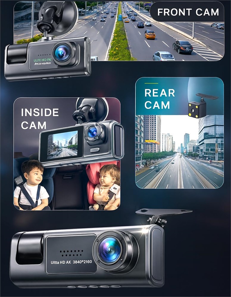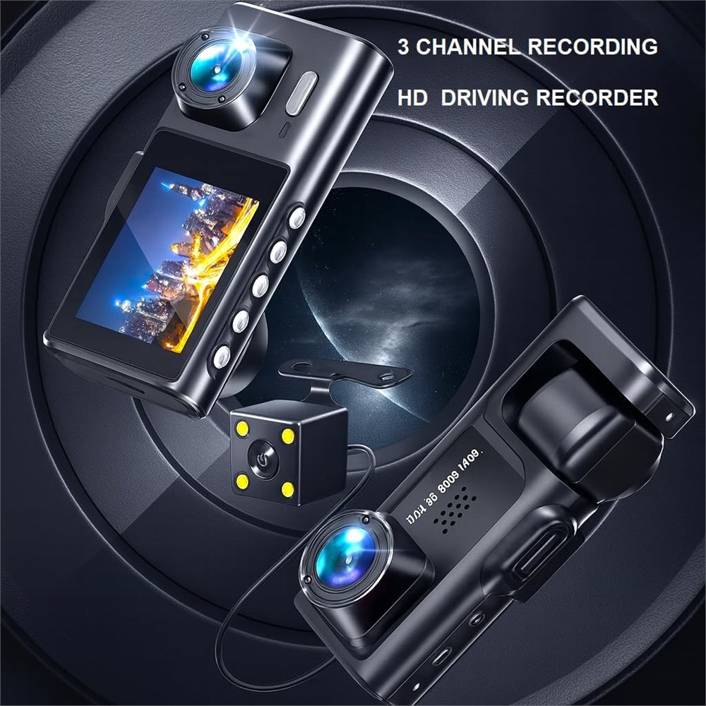 Dash Cam Front and Rear and Inside 1080P This 3 channel dash cam records front, rear, and cabin views in Full HD. Ideal dash camera for car drivers, Uber, Lyft, and taxi services. Get full protection on the road with this car dash camera front and rear. Dash Cam Front and Rear and Inside 1080P This 3 channel dash cam records front, rear, and cabin views in Full HD. Ideal dash camera for car drivers, Uber, Lyft, and taxi services. Get full protection on the road with this c Dashcam with Super Night Vision & 140 Wide Angle Dash cam front and inside camera with infrared night vision captures clear footage even in low light. 140 wide-angle lens ensures full visibility. Great for night drives, parking lots, and 24/7 monitoring with cigar plug on only Loop Recording NO MEMORY CARD INCLUDED This dash cam for cars features loop recording Never miss an incident again. Protect your vehicle while driving or parked powered by cigar plug have to stay plugged for monitoring WiFi Dash Cam with App Control Control this dash cam front and rear camera directly from your smartphone. Use the app to view, download, and share footage instantly. Dashcams for cars made easy! 2.0 IPS Screen + Easy Installation This compact dash cam fits all vehicles. Dash cam for car 12-24v with IPS display, waterproof housing, multi-language support, and built-in battery. Perfect car camera dash cam front and rear.