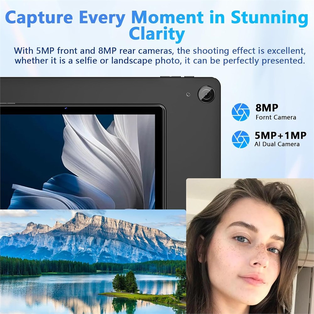 Powerful performance and optimisation The latest high-performance processor and high-capacity memory configuration ensures smooth multitasking and fast application response time.Android 15 system further optimises resource management to provide a more stable and efficient user experience. Extra storage capacity Immerse yourself in a world of infinite possibilities with this 10.1 -inch Android tablet featuring 18GB RAM (6GB+12GB expansion) + 128GB ROM. Expand the storage capacity by adding 1TB with an SD card, allowing the 10.1-inch tablet to store your favourite movies, music, games and more. Enjoy endless mobile entertainment with everything you love at your fingertips! Outstanding display effect Equipped with a 1280*800 high-resolution screen, it delivers brilliant colours and fine picture details. Whether you are watching videos or editing pictures, you can get great visual enjoyment. Long-lasting battery life Built-in 6000mAh high-capacity battery, combined with the intelligent power management function of Android 15 system, is able to meet the needs of daily use. Even under intense use, it can maintain a long battery life and reduce the trouble of frequent charging. Rich connectivity options It supports Wi-Fi 6E, Bluetooth 5.4, and 5G network (optional) to provide high-speed and stable wireless connectivity. It is also equipped with a USB-C port to support fast data transfer and charging, and is compatible with a variety of peripheral extensions to meet the needs of various usage scenarios.