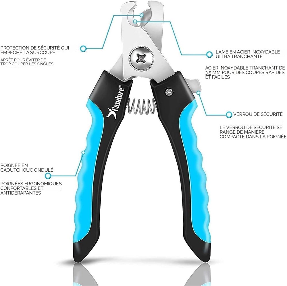 Design : le coupe-griffes Candure pour chien est professionnellement con u pour couper les griffes. C'est un outil de manucure et de p dicure puissant et facile utiliser qui peut tre utilis pour couper les ongles pais la maison, l'int rieur et dans les salons pour animaux de compagnie. Livr avec une lime ongles Id al : ce coupe-griffes pour chien est id al pour les chiens de taille moyenne et grande. Cet emporte-pi ce est id al pour les chats, les chiens, les lapins, les perroquets, les animaux domestiques, les oiseaux et les griffes S curit : ce coupe-griffes pour animaux de compagnie est livr avec une protection de s curit , ne coupez pas vos ongles trop profonds. Ce coupe-griffes pour chien et chat est un design ergonomique qui aide r duire les blessures Ressort sp cial : pour ce coupe-griffes pour chien et chat, vous n'avez pas besoin d'utiliser votre force pour couper les griffes de votre animal de compagnie. Ce coupe-ongles avec protection de s curit emp che les ongles d' tre coup s trop profond ment Cadeau : cet outil de manucure pour animaux de compagnie contient un coupe-ongles durable pour chien, pr sent dans un emballage tr s pratique avec la marque Candure Ce coupe-griffes en acier inoxydable est un cadeau parfait pour les chiens, les chats, les hommes, les femmes avec des animaux domestiques.