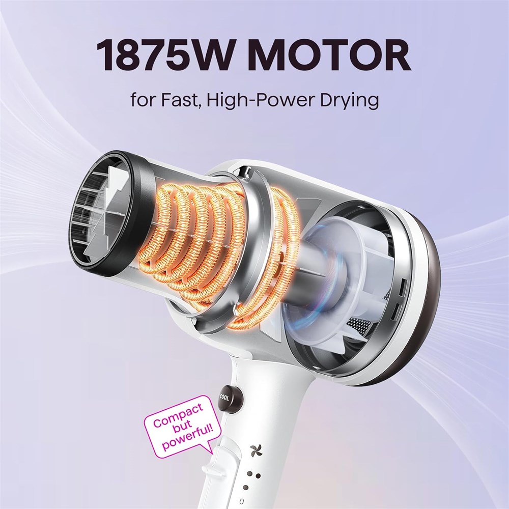 1875 Watts Powerful Motor for 2X Faster Blowdry: Wavytalk hair dryer is equipped with an efficient ADC motor and advanced internal aerodynamics that ensure strong and steady airflow. Paired with the constant heat, it drastically cuts blowdry time by speeding up the evaporating process. Faster drying means time-saving and less damage to your hair Ionic Frizz Reduction : Emits millions of ions to neutralize static electricity, instantly smooth flyaways, and lock in shine for hair that feels sleek, looks glossy, and stays effortlessly polished 3 Attachments for All Hair Types: Nozzle concentrates and directs airflow, ideal for precision styling; Diffuser disperses airflow evenly, reduces frizz, and is suitable for curly or wavy hair.Comb helps to straighten the hair, particularly beneficial for thick or unruly hair Compact Design: The hairdryer boasts a compact size and lightweight construction, while its polished metallic surface or matte texture adds a touch of finesse to the overall design. Furthermore, the blowdryer enhances the ergonomic grip, ensuring comfortable usage and preventing accidental button presses. This hair dryer equipped with a high-density dust screen inside, which can effectively prevent hair from being sucked in Safety Protection&Low Radiation: The blow dryer for natural black hair will automatically shut down when the temperature is too high, it will avoid fire hazards if you forget to turn off the ionic dryer after using or if the blowing-dryer is covered by cloth or papers when it is working. Adopting low magnetic wave construction technology helps reduce electromagnetic field radiation by more 50% than other general 1400-1600W hairdryers, friendly to pregnant women and children.