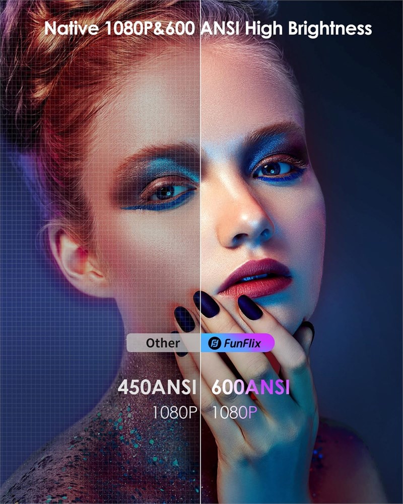 Moteur enti rement scell mis jour en 2023 Ce projecteur de film dispose d'un moteur r cent enti rement scell , le projecteur est moins sujet la p n tration de poussi re, ce qui r duit les points noirs et la perte de qualit d'image, maintient non seulement la qualit de projection de l'appareil, mais prolonge galement sa dur e de vie. Naturel1080p et 600ANSI Le projecteur FunFlix dispose d'une haute luminosit de 600 ANSI et d'une r solution native de 1080p pour une qualit d'image de projection vive et fid le ; il prend galement en charge la 4K, ce qui rend possible des soir es cin ma en famille WiFi 2,4G et 5G et Bluetooth 5.2 Ce projecteur WiFi vous permet de profiter d'images plus lisses gr ce des vitesses de transmission r seau plus lev es. Les haut-parleurs hi-fi int gr s offrent un son surround 360 . Vous pouvez galement connecter des appareils externes via Bluetooth. Correction Keystone 4D/4P et zoom Avec la correction horizontale et verticale 4D/4P, vous pouvez r gler la distorsion trap zo dale pour des angles verticaux et horizontaux de 50 et redimensionner facilement l' cran avec la fonction de zoom sans d placer le projecteur. Connexion sans fil et c ble Gr ce la connexion Wi-Fi et la fonction de diffusion du t l phone, vous pouvez facilement connecter l'appareil et l'image du projet. En outre, 2 ports HDMI, 2 ports USB, 1 AV, 1 prise en charge audio multim dia.