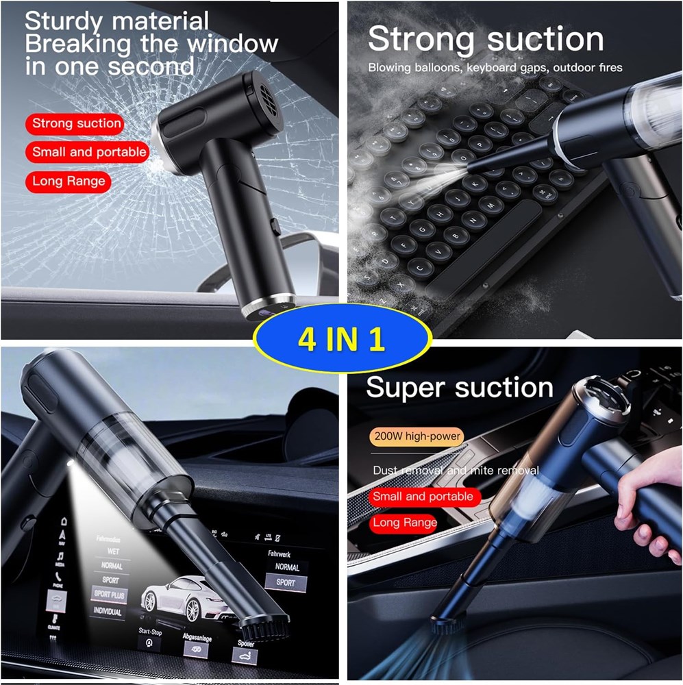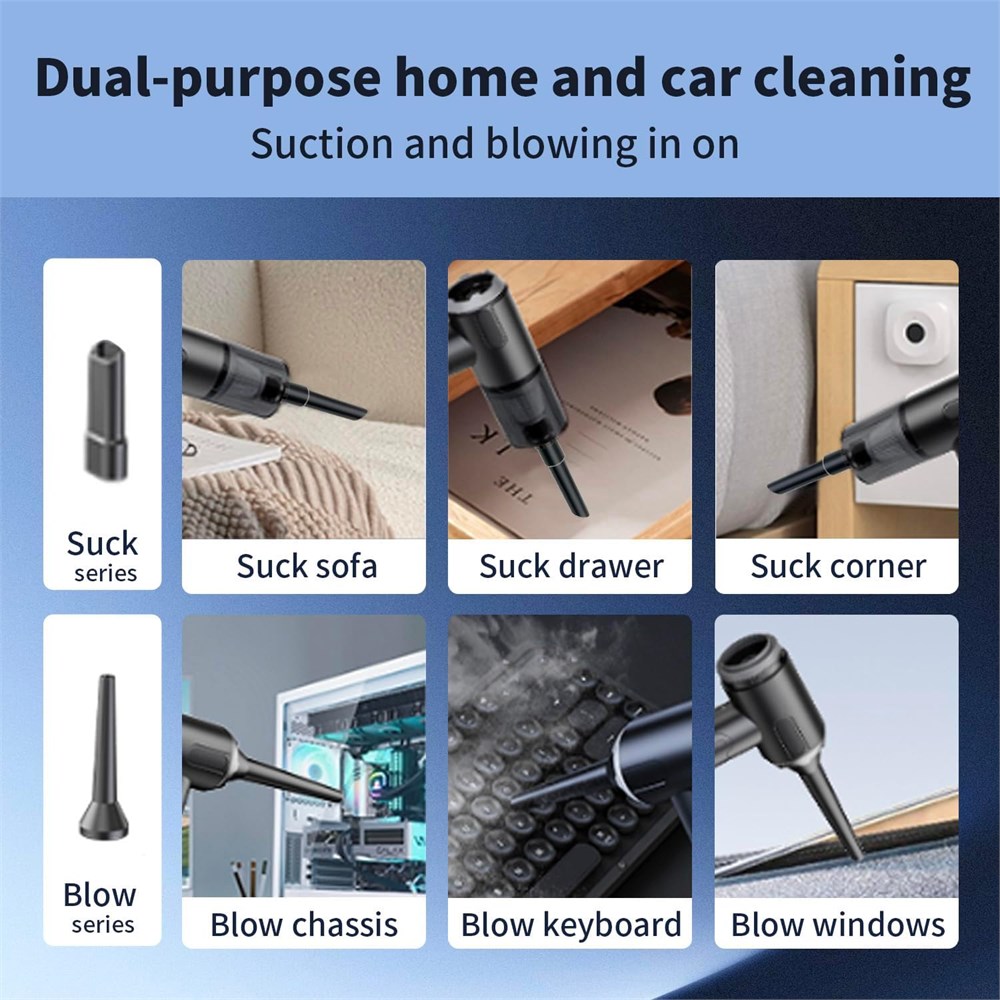 Super puissance d'aspiration de 15 000 PA : l'aspirateur JEIGKEN est int gr avec un moteur haute vitesse qui fournit une super puissance d'aspiration allant jusqu' 15 000 pa. Aspire facilement et efficacement toutes sortes de d chets, tels que les miettes de pain, les restes de papier, la poussi re, les poils d'animaux, les petites pierres, les cendres de cigarette et autres petits d bris. Satisfait votre nettoyage quotidien. - Design multifonction 4 en 1 : ce n'est pas seulement un aspirateur main ordinaire sans fil, mais aussi un puissant ventilateur et un brise-fen tre pour les urgences. Fixez l'entonnoir fourni l'arri re de l'aspirateur sans fil pour le transformer en un souffleur qui limine la poussi re des claviers et gonfle les ballons. L'arri re de l'aspirateur de voiture est fabriqu en alliage r sistant avec un design dentel qui brise facilement le verre dur. - Design sans fil, batterie de grande capacit et charge rapide : l'aspirateur main est sans fil, portable et l ger, adapt diff rentes personnes. Avec une batterie haute capacit de 4000 mAh, il peut tre utilis en continu pendant 30 minutes, et le port de charge de type C permet une charge rapide et pratique, enti rement charg en 1 1,5 heure. Assurez-vous que votre aspirateur est toujours pr t affronter toutes les t ches de nettoyage. Remarque : veuillez le charger compl tement lorsque vous l'utilisez pour la premi re fois. - Lumi re LED et filtre lavable : l'aspirateur portable a un petit design pratique et efficace. Lorsque vous allumez l'aspirateur, il est accompagn d'une lumi re LED clignotante qui vous aide voir plus clairement lors du nettoyage des coins sombres. Anti-poussi re : le filtre int gr est lavable et utilisable maintes et maintes fois, ce qui permet d' conomiser de l'argent et de l'environnement. - Taille pliable et miniature : la fonction pliable sans fil portable le rend plus petit, pratique transporter et ranger dans votre voiture, bureau et autres endroits. La taille de cet aspirateur main en tat d'utilisation : 18 cm (L) x 16,5 cm (l) x 6,5 cm (H). - Emballage et accessoires : comprend 1 aspirateur main, 1 buse, 1 brosse buse, 1 buse, 1 c ble de charge USB, 1 manuel (fran ais non garanti). La combinaison d'accessoires r pond aux besoins quotidiens de nettoyage du v hicule et de la maison pour vous assurer que vous pouvez nettoyer toutes les zones, mais galement d'ajouter un accessoire avec une fonction fen tre cass e, compact mettre dans la voiture en cas d'urgence. - Lavable : la tasse de collecte de poussi re de l'aspirateur peut tre retir e et lav e pour tre r utilis e.
